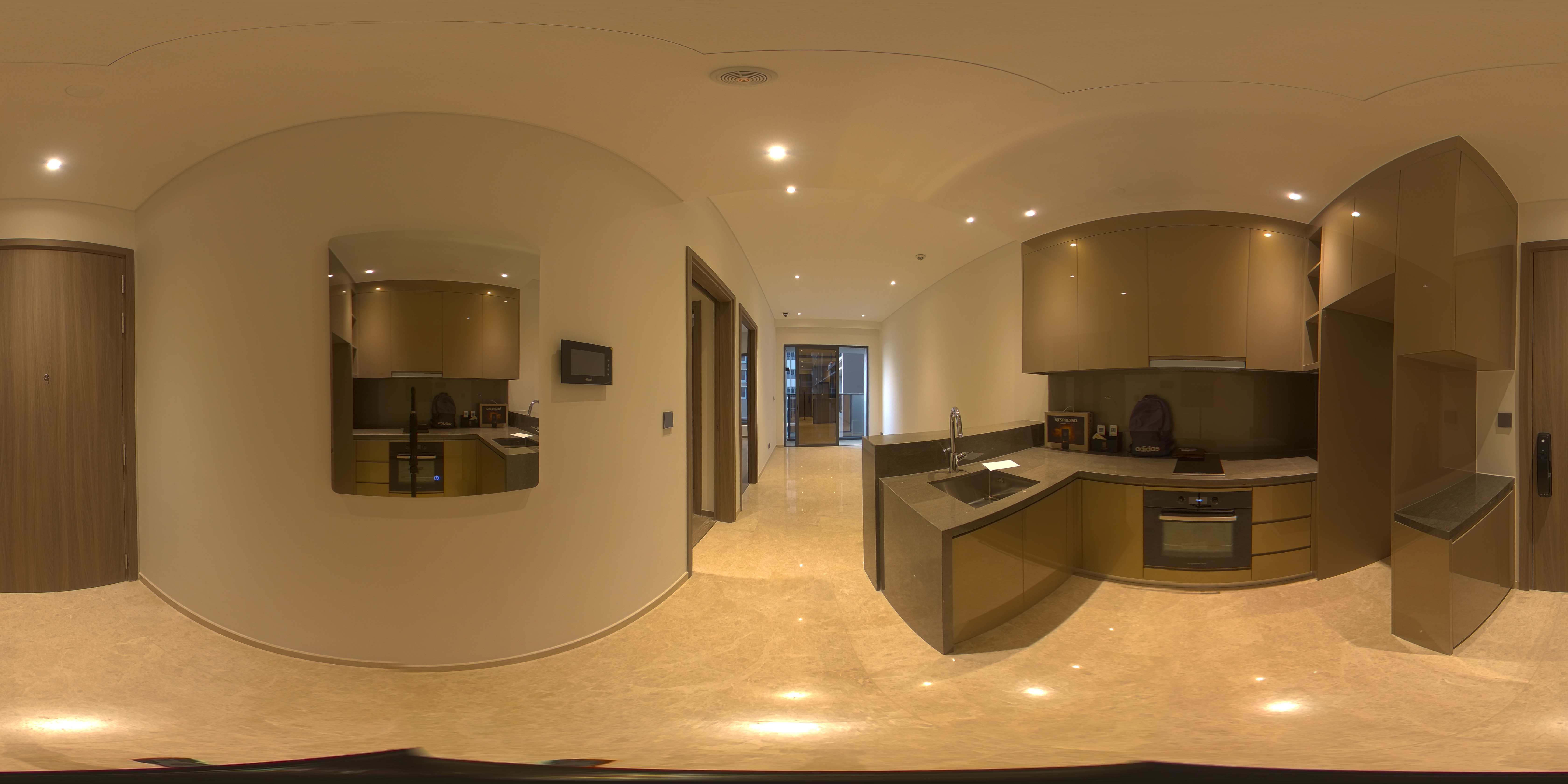 Thiết kế sang trọng, nội thất thể hiện sự sang trọng ở các chi tiết đắt giá như trần nhà cao, khung cửa sổ lớn, những tấm đá cẩm thạch lắp đặt tỉ mỉ trên mặt quầy bếp, sàn nhà, sàn và tường phòng tắm.