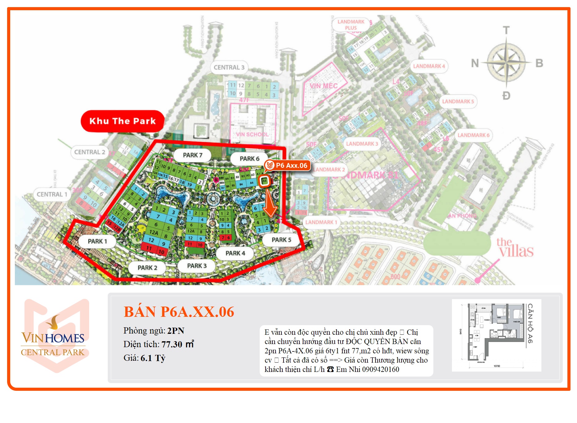 P6A-4X.06 giá 6ty1 fnt 77,m2 có hđt, wiew sông cv