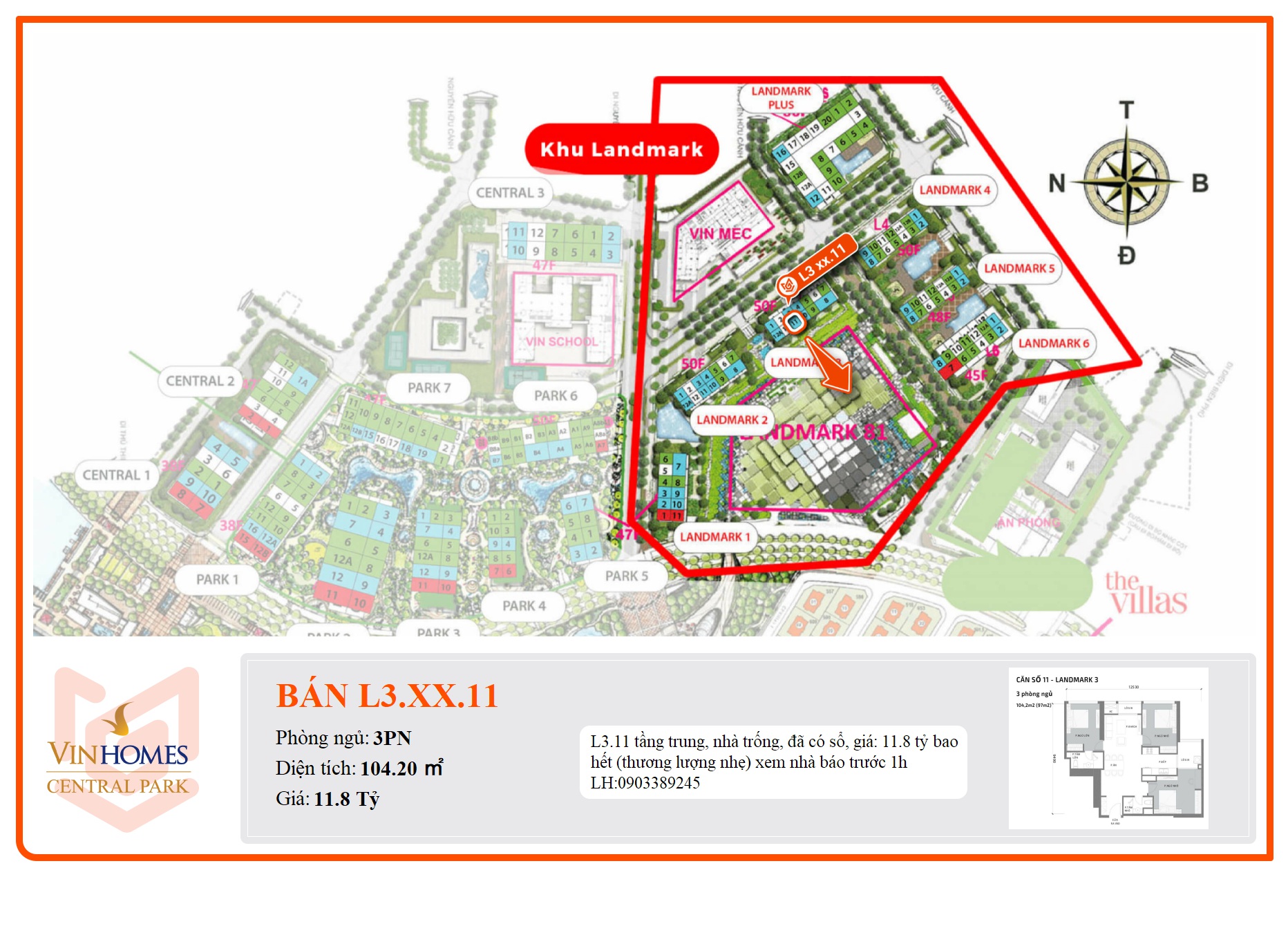 Bán Căn hộ 3PN Vinhomes Central Park