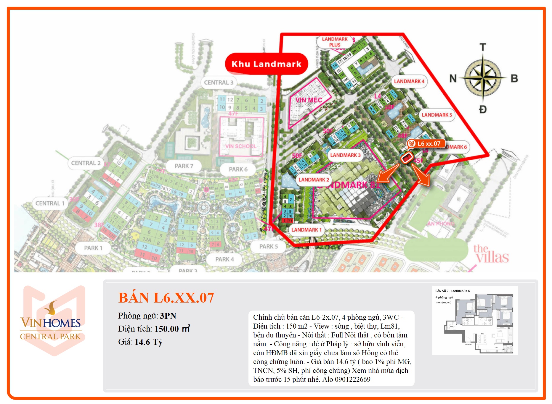 Chính chủ bán căn L6-2x.07, 4 phòng ngủ, 3WC