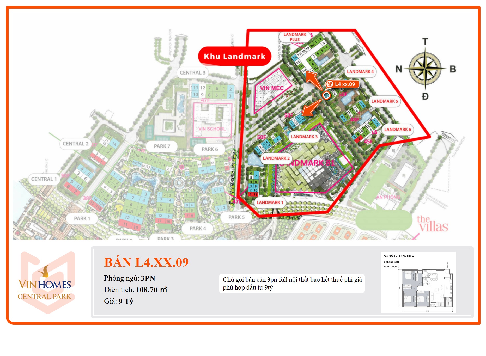 Chủ gởi bán căn 3pn full nội thất bao hết thuế phí giá phù hợp đầu tư 9tỷ
