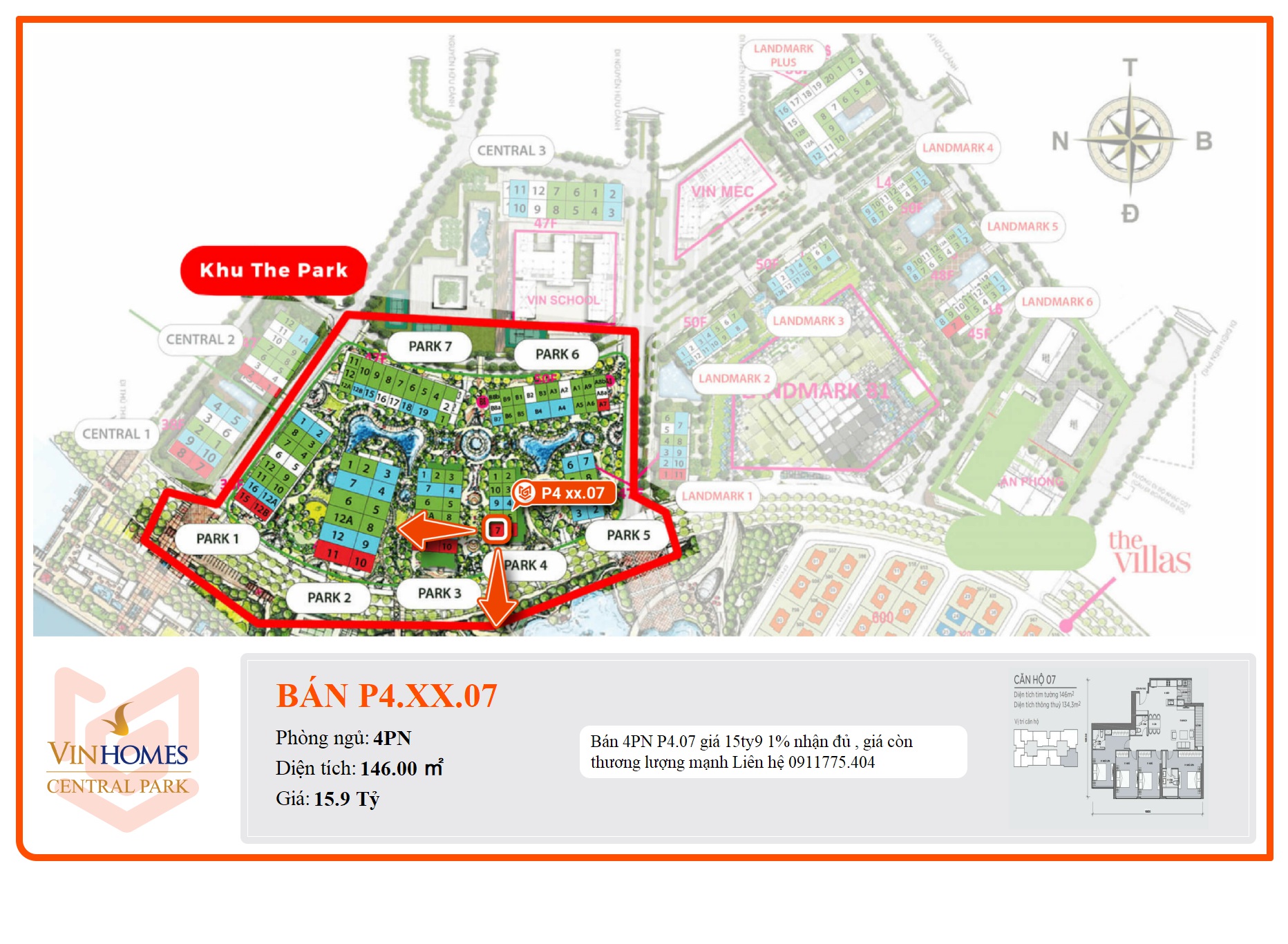 Bán 4PN P4.07 giá 15ty9