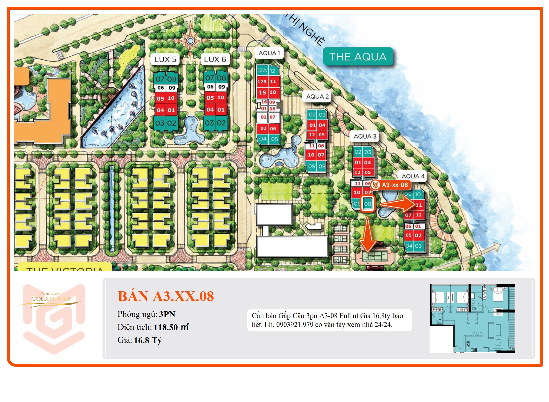 Cần bán Gấp Căn 3pn A3-08 Full nt
