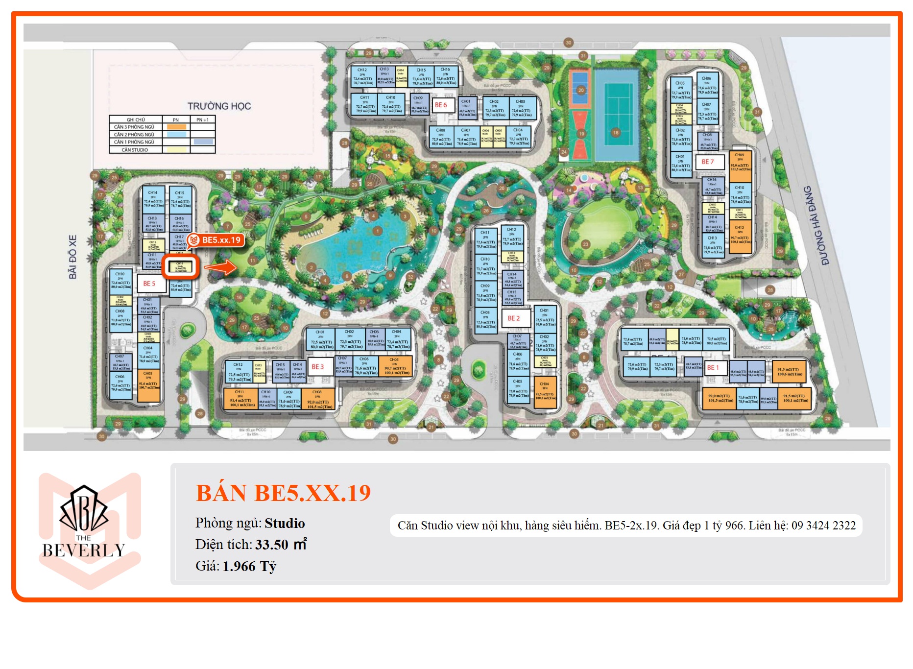 Căn Studio view nội khu, hàng siêu hiếm. BE5-2x.19. Giá đẹp 1 tỷ 966.