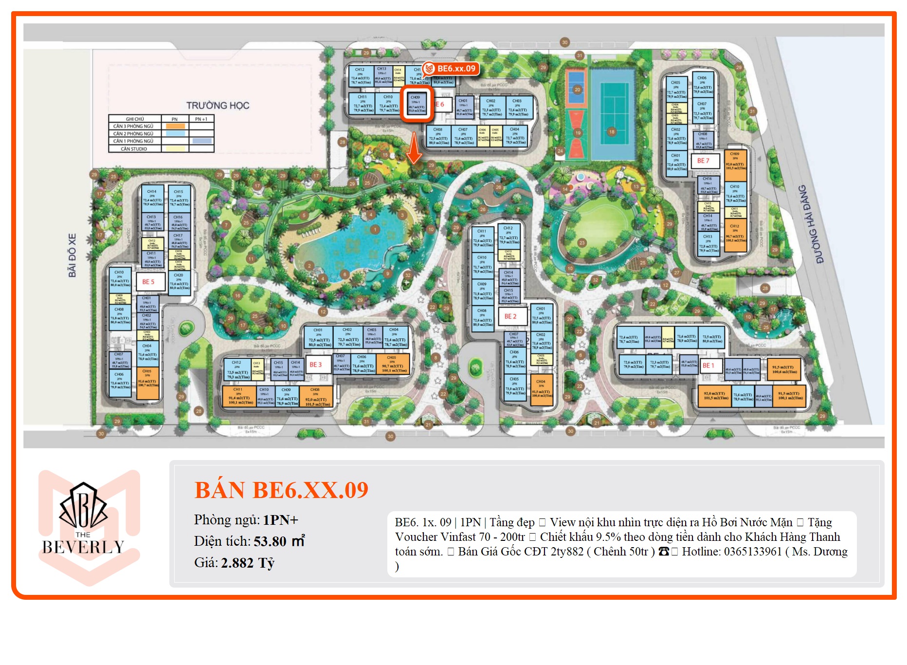 BE6. 1x. 09 | 1PN | Tầng đẹp 👉 View nội khu nhìn trực diện ra Hồ Bơi Nước Mặn 👉 Tặng Voucher Vinfast 70 - 200tr 👉 Chiết khấu 9.5% theo dòng tiền dành cho Khách Hàng Thanh toán sớm. 👉 Bán Giá Gốc CĐT 2ty882 ( Chênh 50tr ) ☎️ Hotline: 0365133961 ( Ms. Dương )