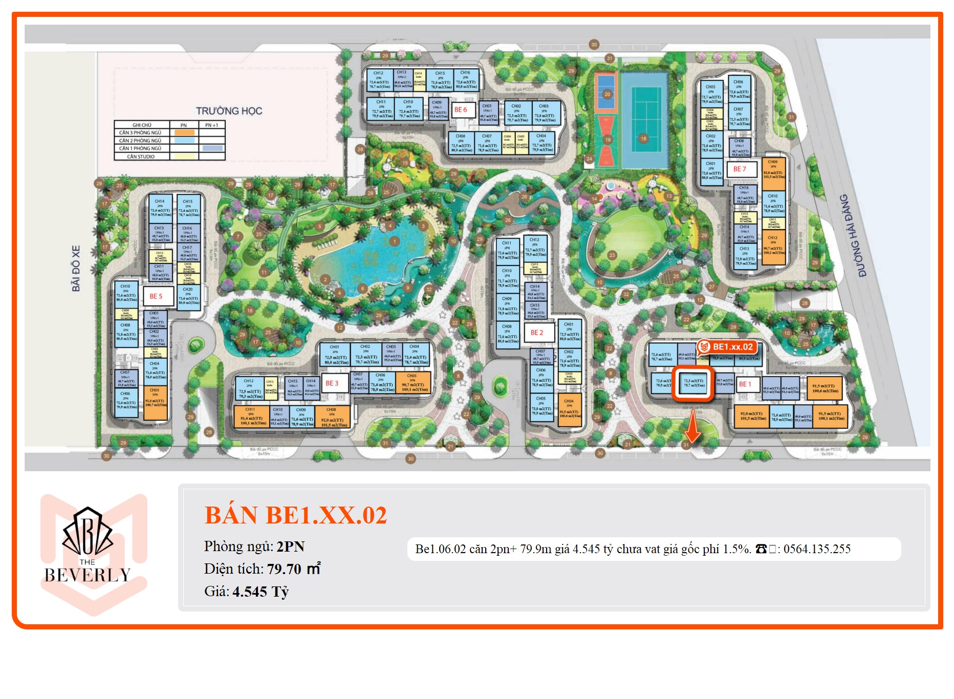 Be1.06.02 căn 2pn+ 79.9m giá 4.545 tỷ chưa vat giá gốc phí 1.5%.