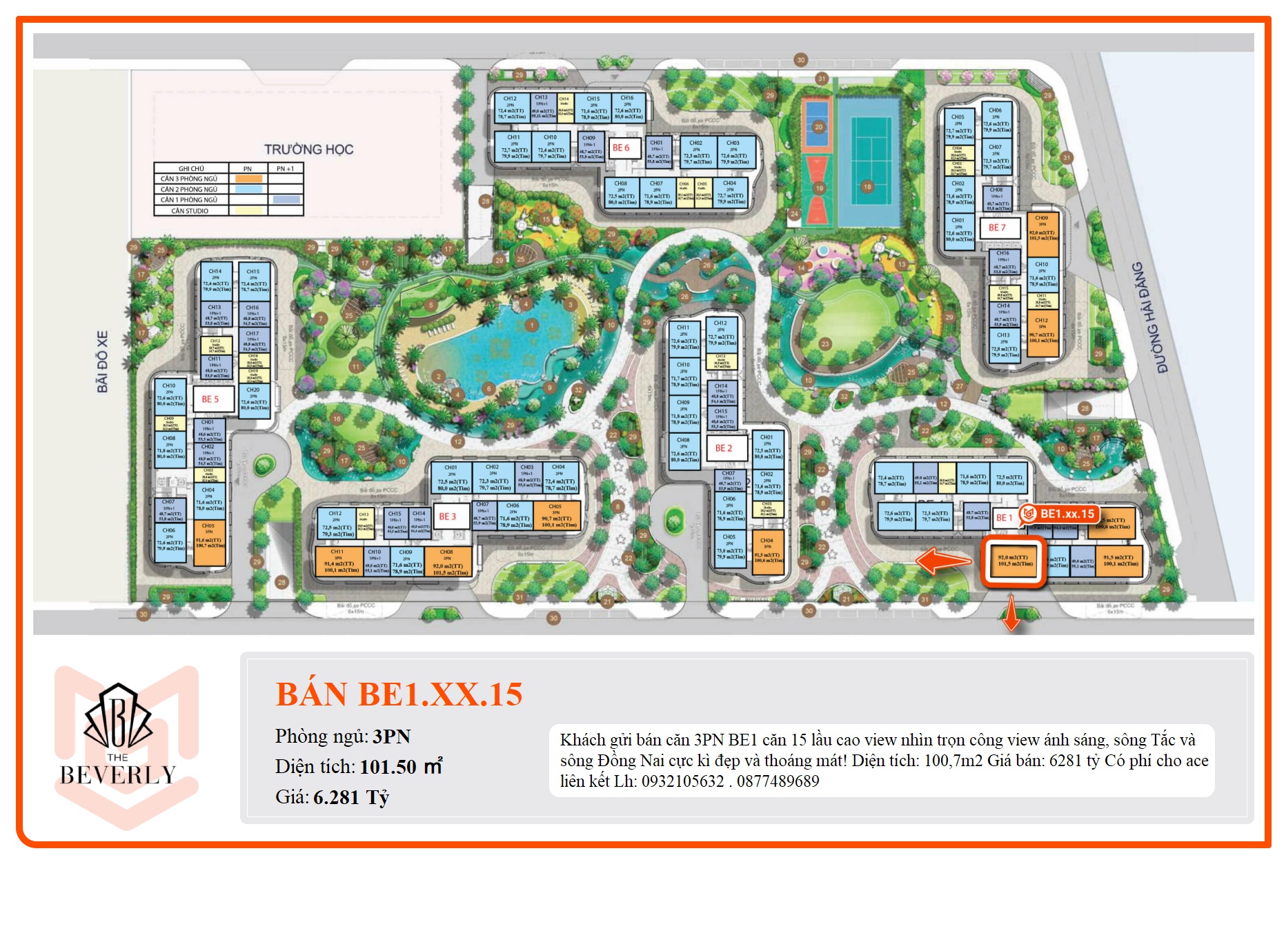 Khách gửi bán căn 3PN BE1 căn 15 lầu cao view nhìn trọn công view ánh sáng, sông Tắc và sông Đồng Nai cực kì đẹp và thoáng mát!