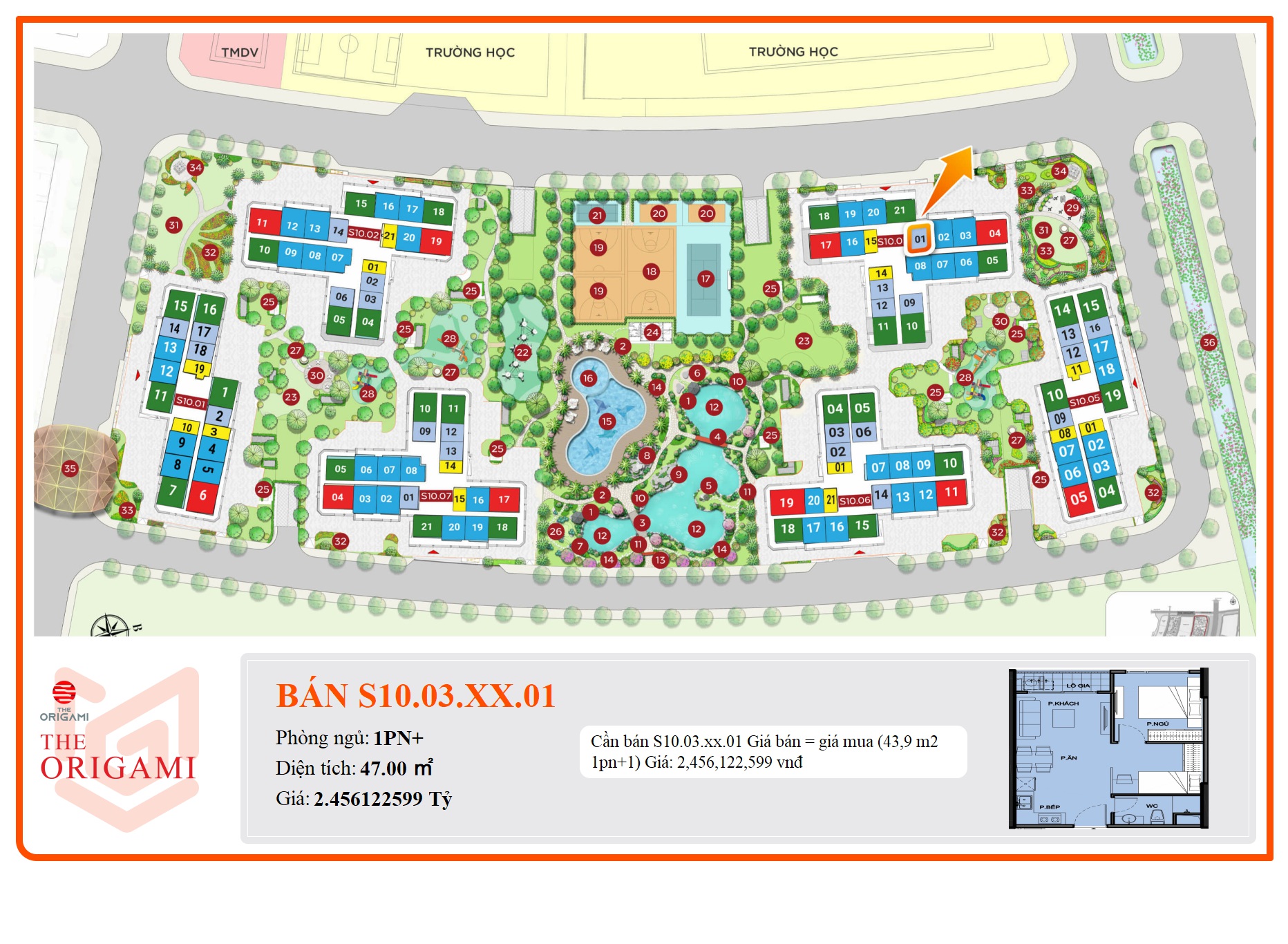 - Phân khu The Origami có vị trí đắc địa, thuận lợi di chuyển, liên kết vùng cho cư dân.