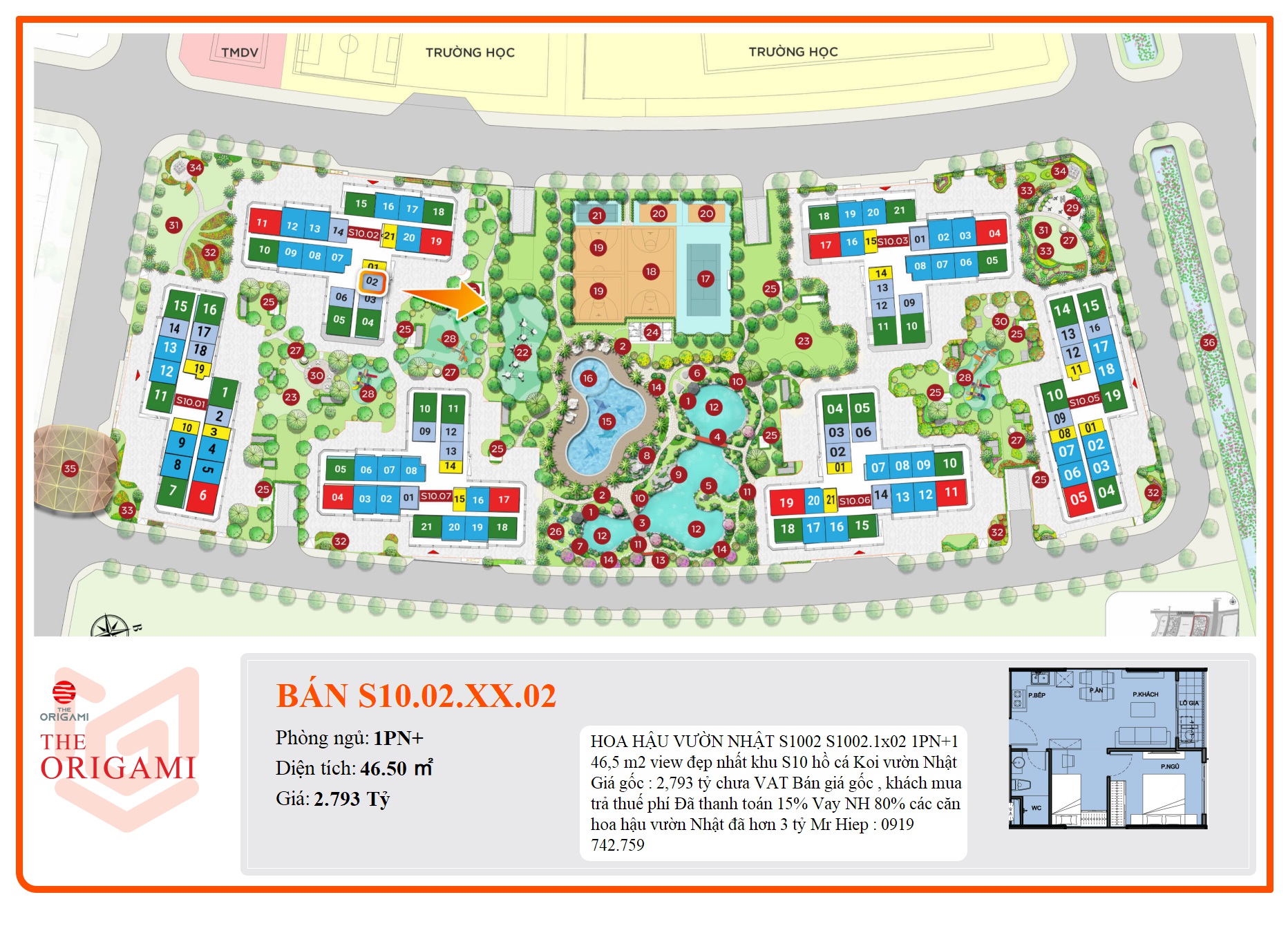 1PN+1 46,5 m2 view đẹp nhất khu S10 hồ cá Koi vườn Nhật