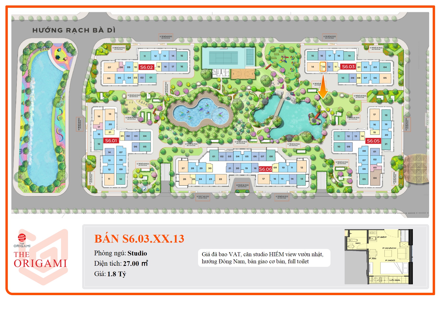 Giá đã bao VAT, căn studio HIẾM view vườn nhật, hướng Đông Nam, bàn giao cơ bản, full toilet