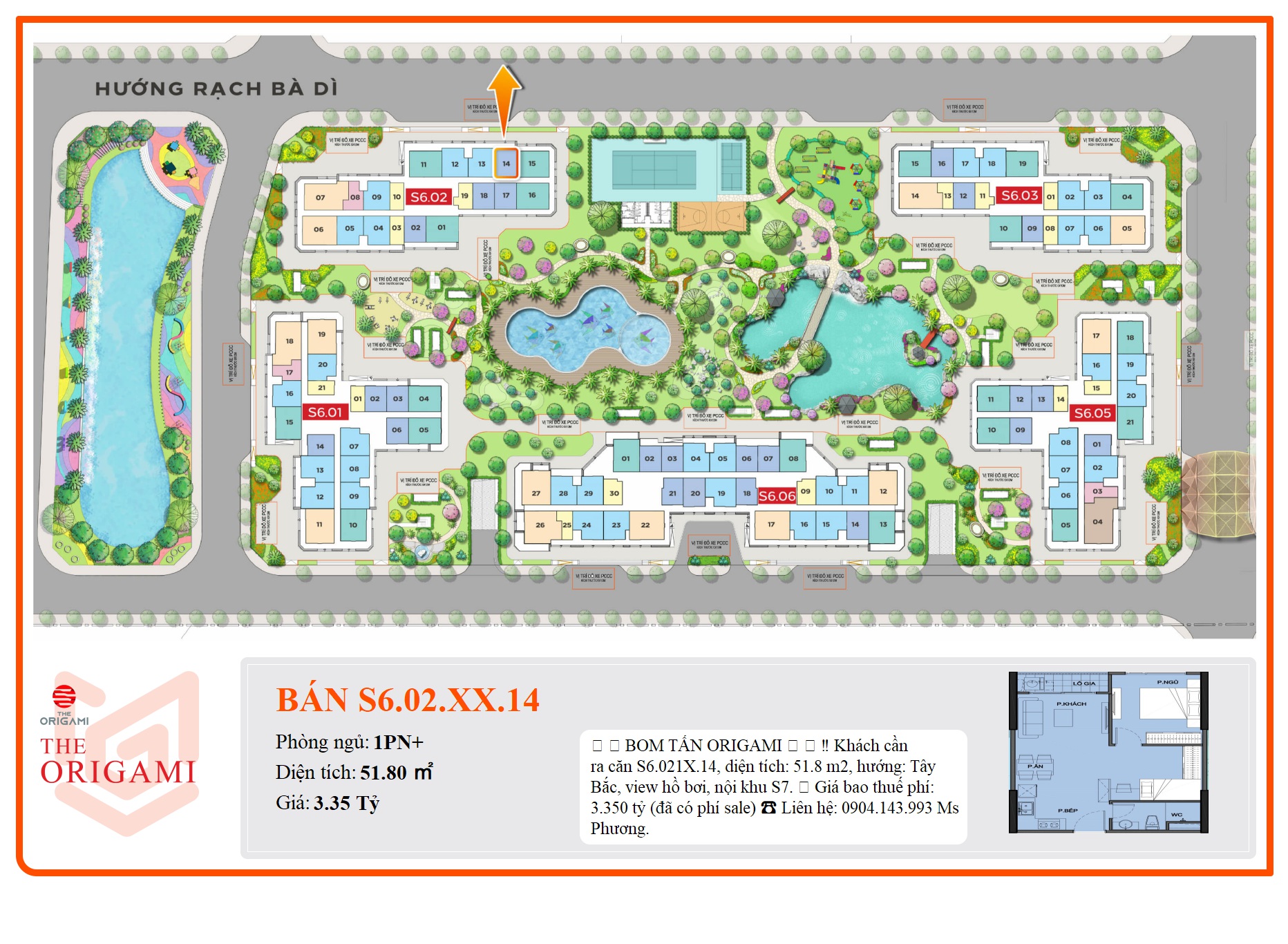 ‼ Khách cần ra căn S6.021X.14, diện tích: 51.8 m2, hướng: Tây Bắc, view hồ bơi, nội khu S7.