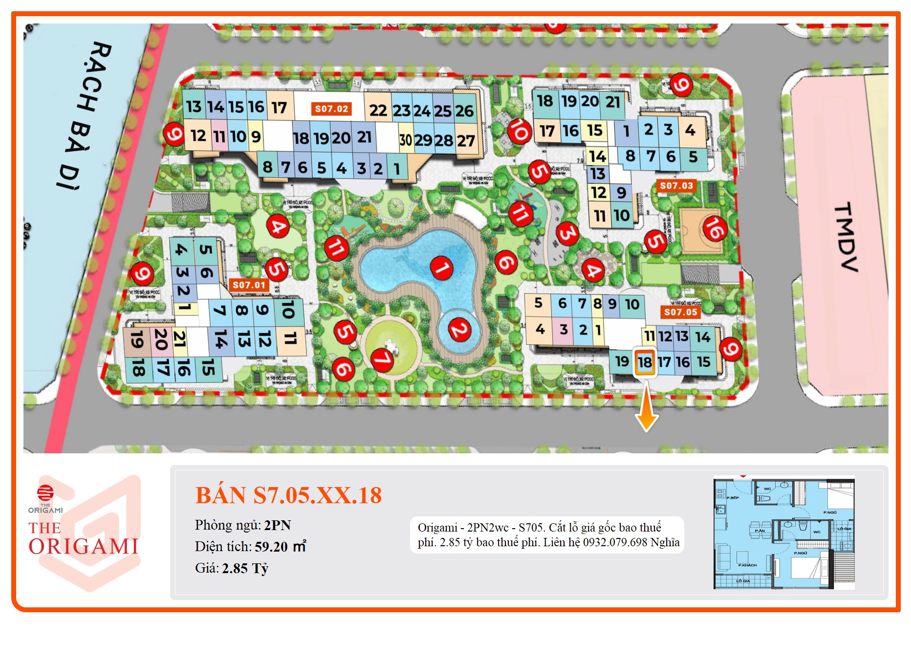 Origami - 2PN2wc - S705. Cắt lỗ giá gốc bao thuế phí. 2.85 tỷ bao thuế phí. Liên hệ 0932.079.698 Nghĩa