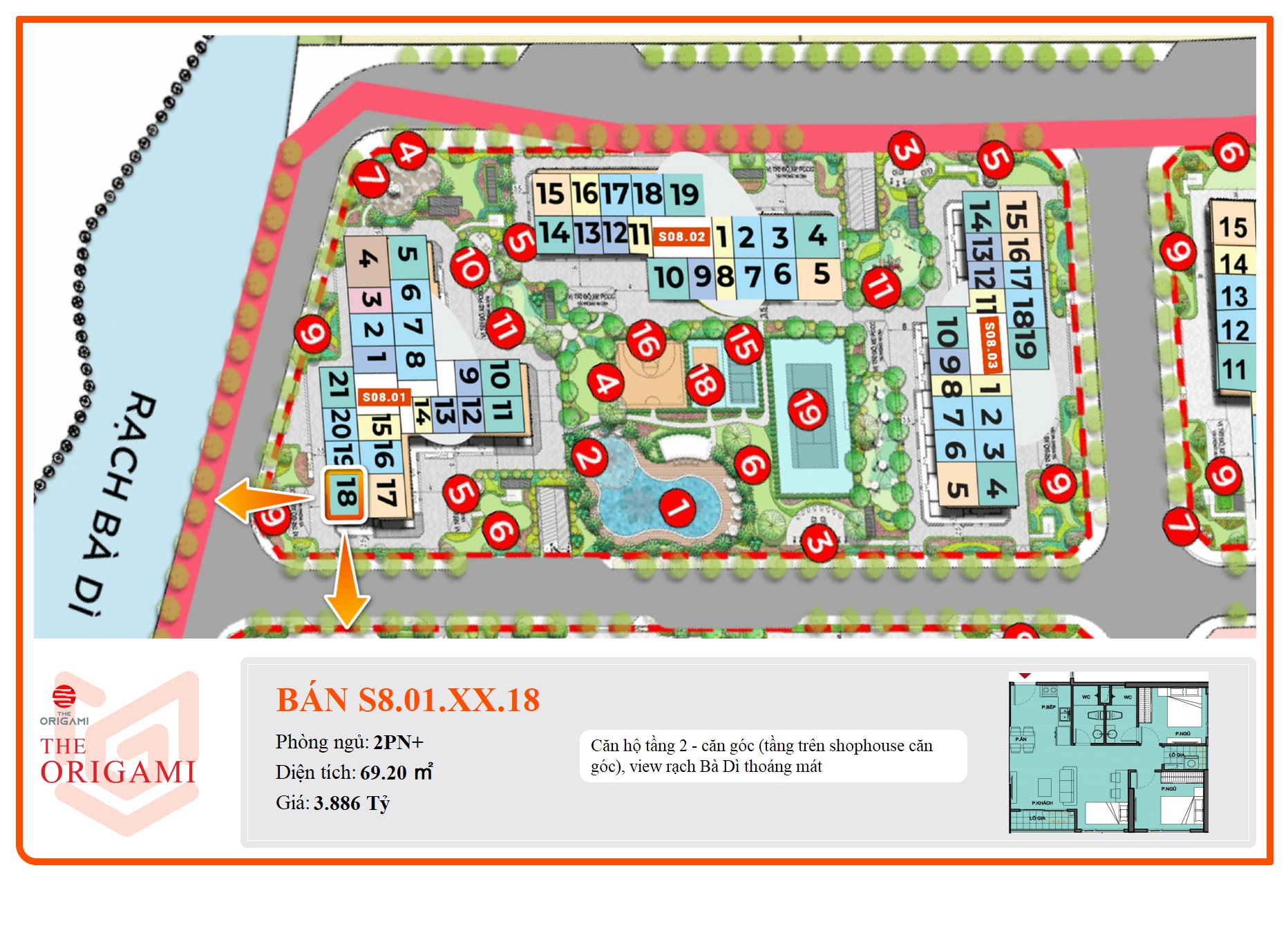 Căn hộ tầng 2 - căn góc (tầng trên shophouse căn góc), view rạch Bà Dì thoáng mát