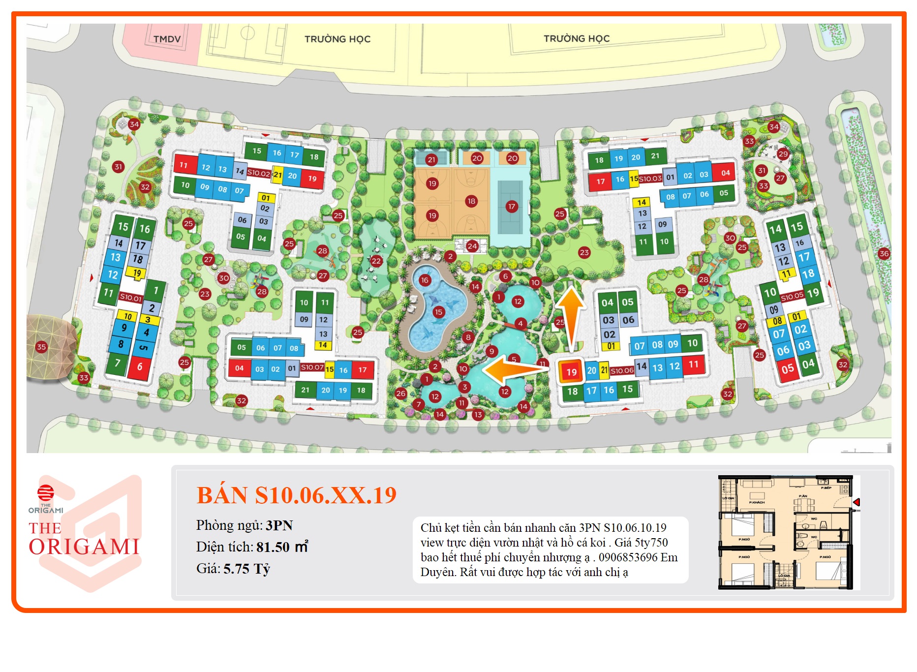 Chủ kẹt tiền cần bán nhanh căn 3PN S10.06.10.19 view trực diện vườn nhật và hồ cá koi .