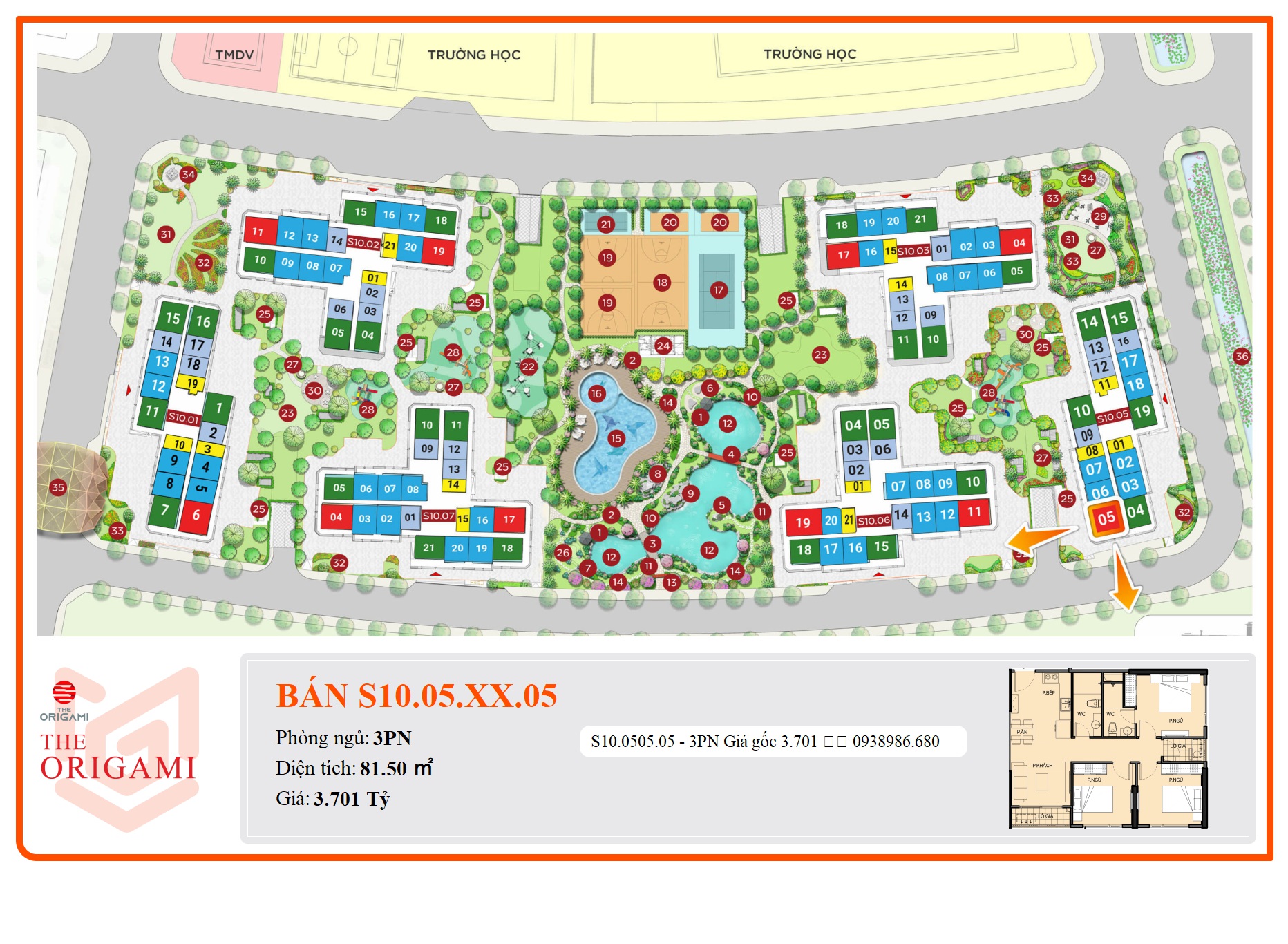 - Phân khu The Origami có vị trí đắc địa, thuận lợi di chuyển, liên kết vùng cho cư dân.