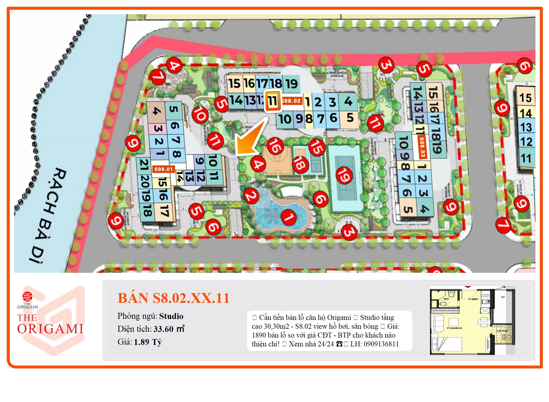 👉 Cần tiền bán lỗ căn hộ Origami 👉 Studio tầng cao 30,30m2 - S8.02 view hồ bơi, sân bóng 👉 Giá: 1890 bán lỗ so với giá CĐT - BTP cho khách nào thiện chí! 👉 Xem nhà 24/24 ☎️ LH: 0909136811