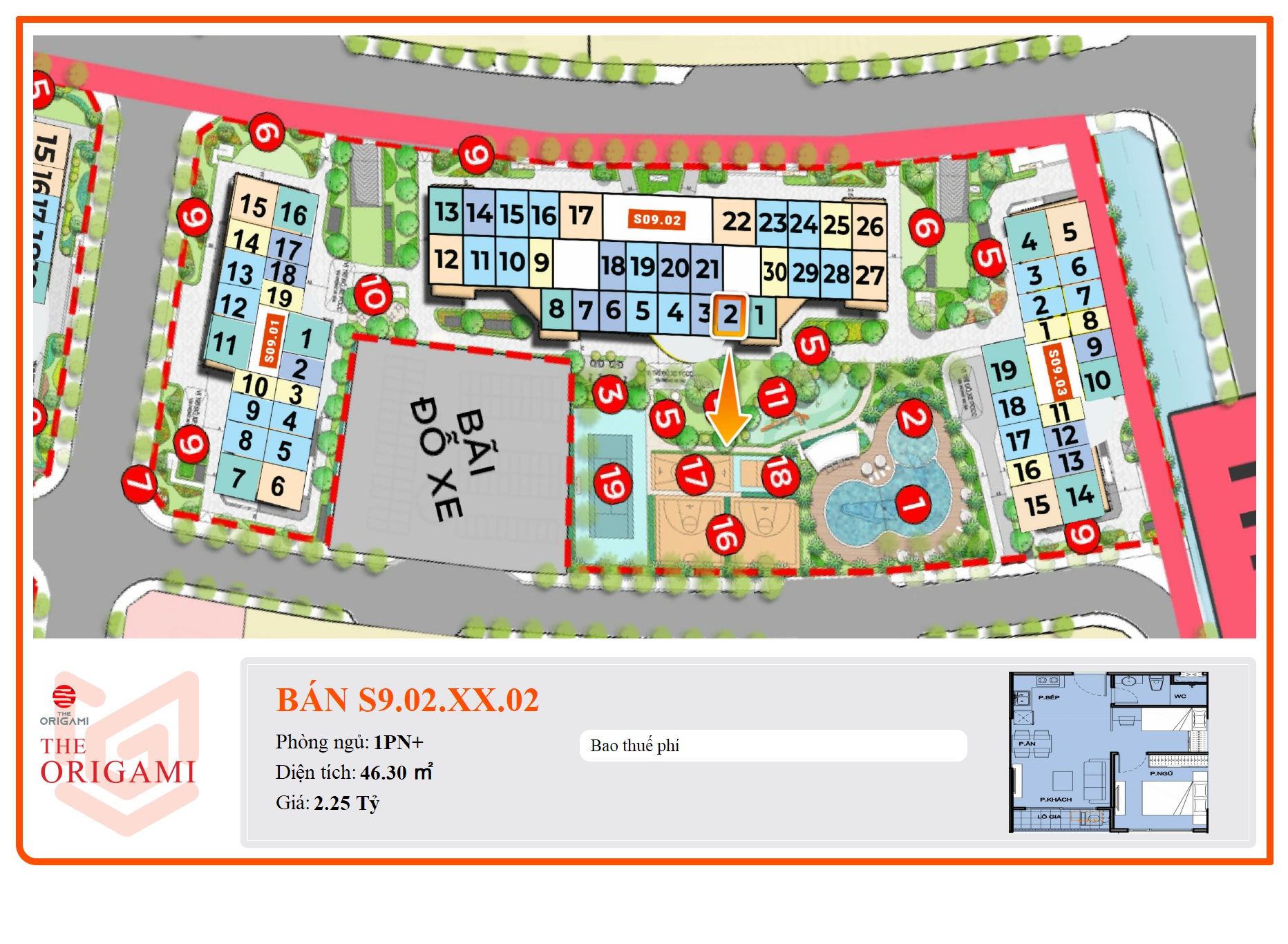 - Phân khu The Origami có vị trí đắc địa, thuận lợi di chuyển, liên kết vùng cho cư dân.