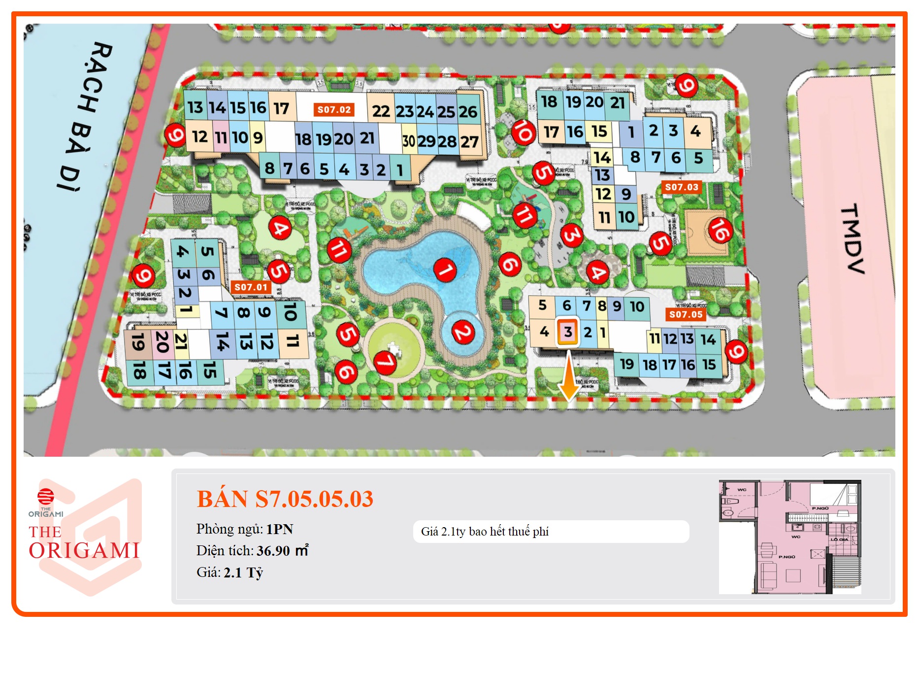 - Phân khu The Origami có vị trí đắc địa, thuận lợi di chuyển, liên kết vùng cho cư dân.
