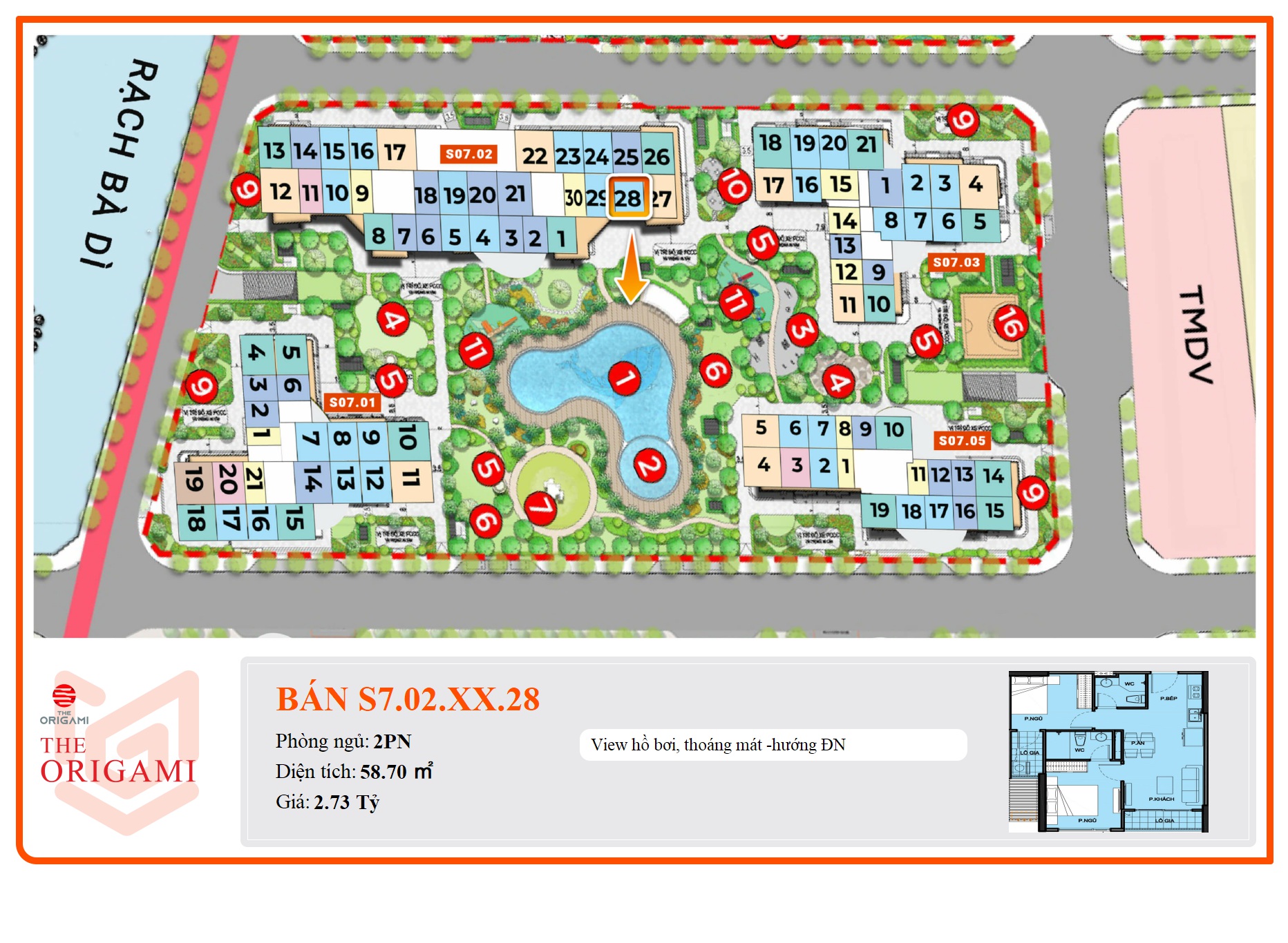 - Phân khu The Origami có vị trí đắc địa, thuận lợi di chuyển, liên kết vùng cho cư dân.