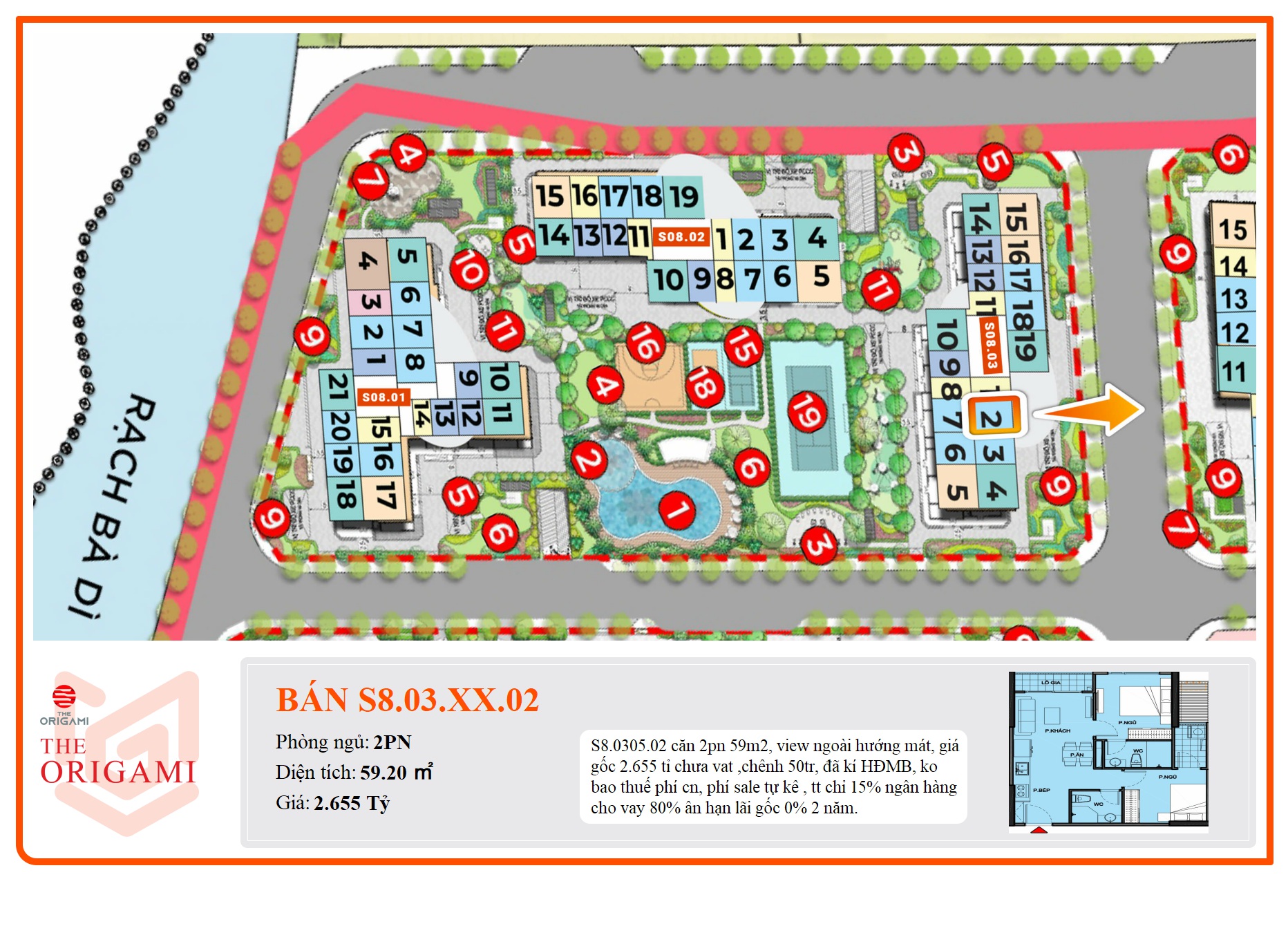 S8.0305.02 căn 2pn 59m2, view ngoài hướng mát, giá gốc 2.655 tỉ chưa vat ,chênh 50tr, đã kí HĐMB, ko bao thuế phí cn, phí sale tự kê , tt chỉ 15% ngân hàng cho vay 80% ân hạn lãi gốc 0% 2 năm.