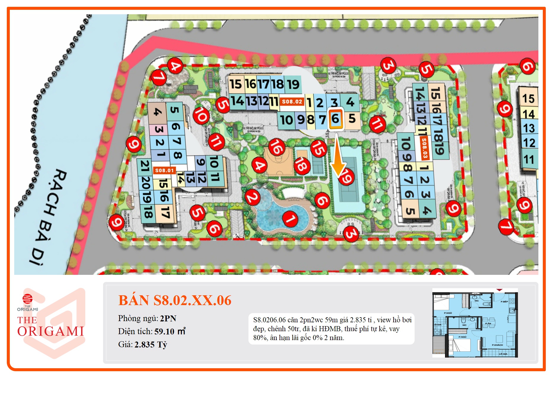S8.0206.06 căn 2pn2wc 59m giá 2.835 tỉ , view hồ bơi đẹp, chênh 50tr, đã kí HĐMB, thuế phí tự kê, vay 80%, ân hạn lãi gốc 0% 2 năm.