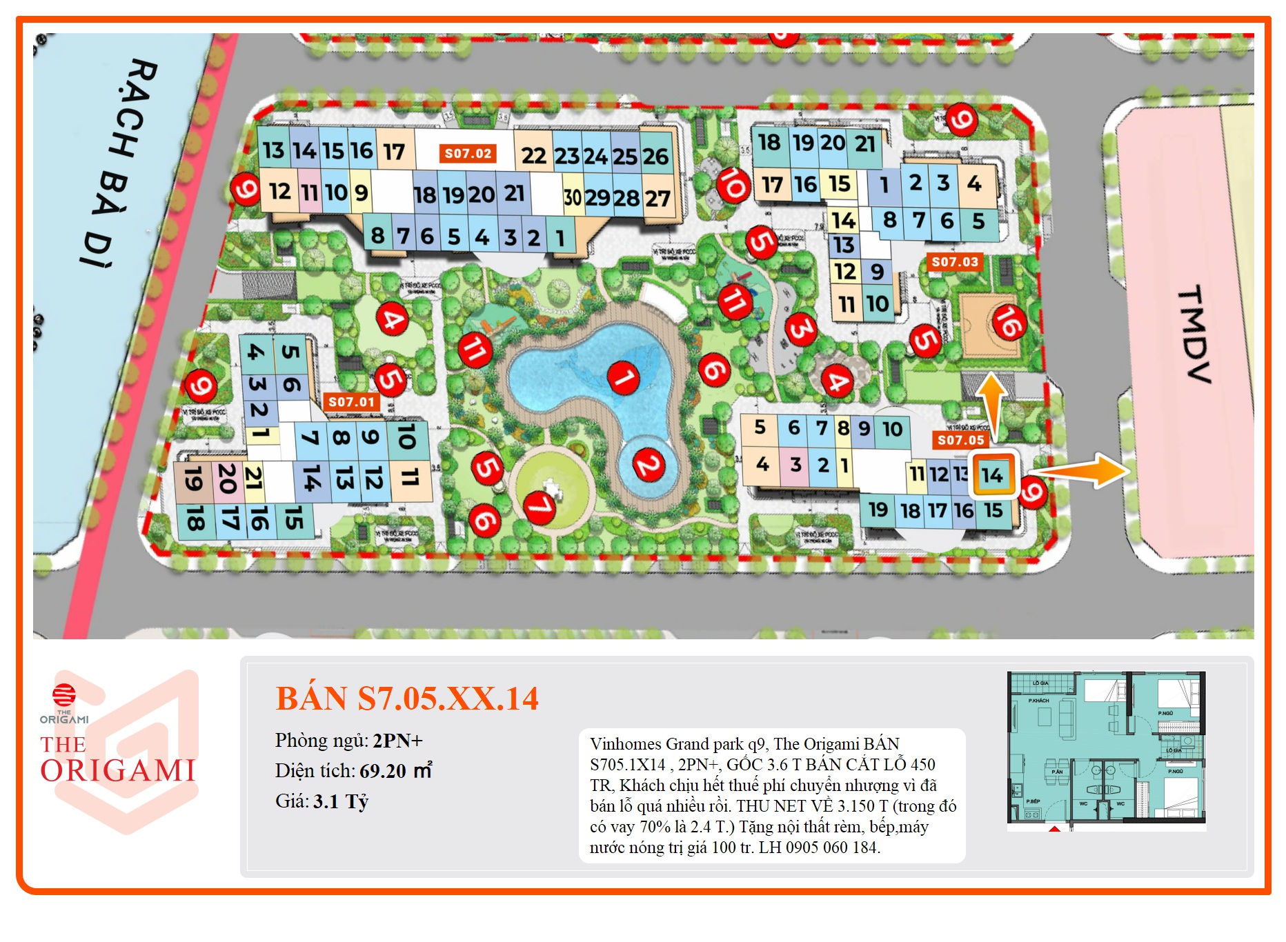 Bán Căn hộ 2PN+ Vinhomes Grand Park - The Origami