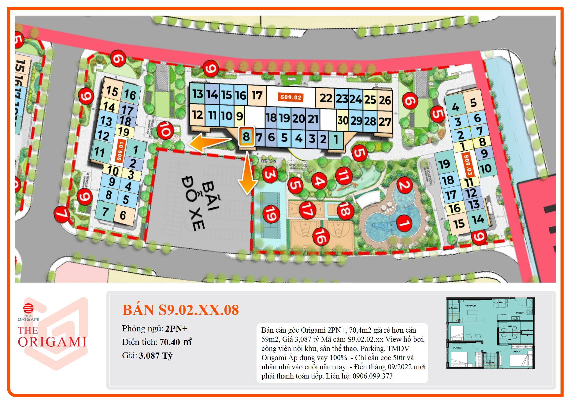 View hồ bơi, công viên nội khu, sân thể thao, Parking, TMDV Origami