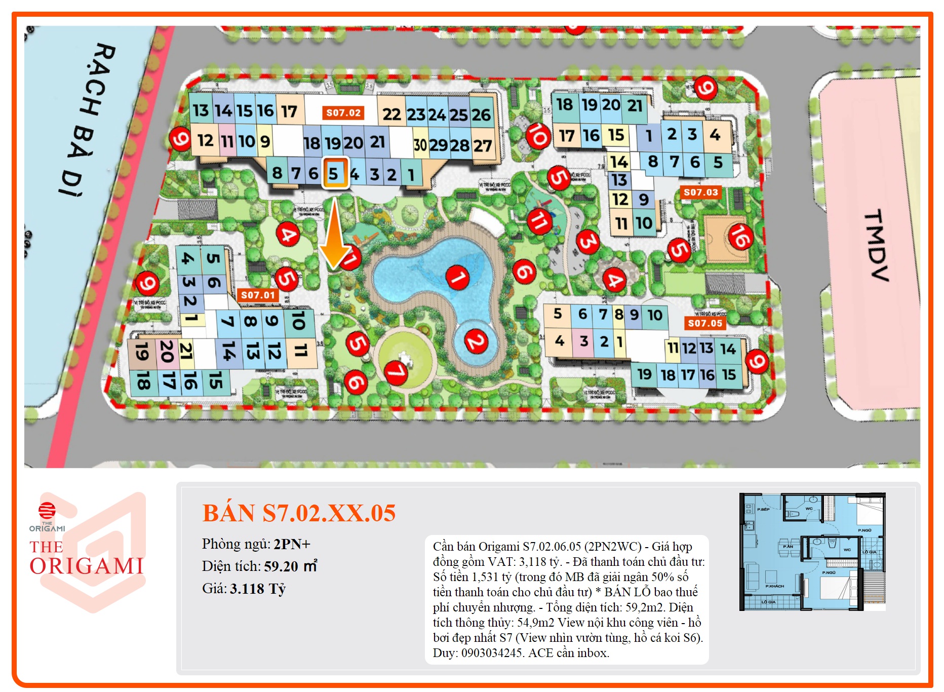 Cần bán Origami S7.02.06.05 (2PN2WC)