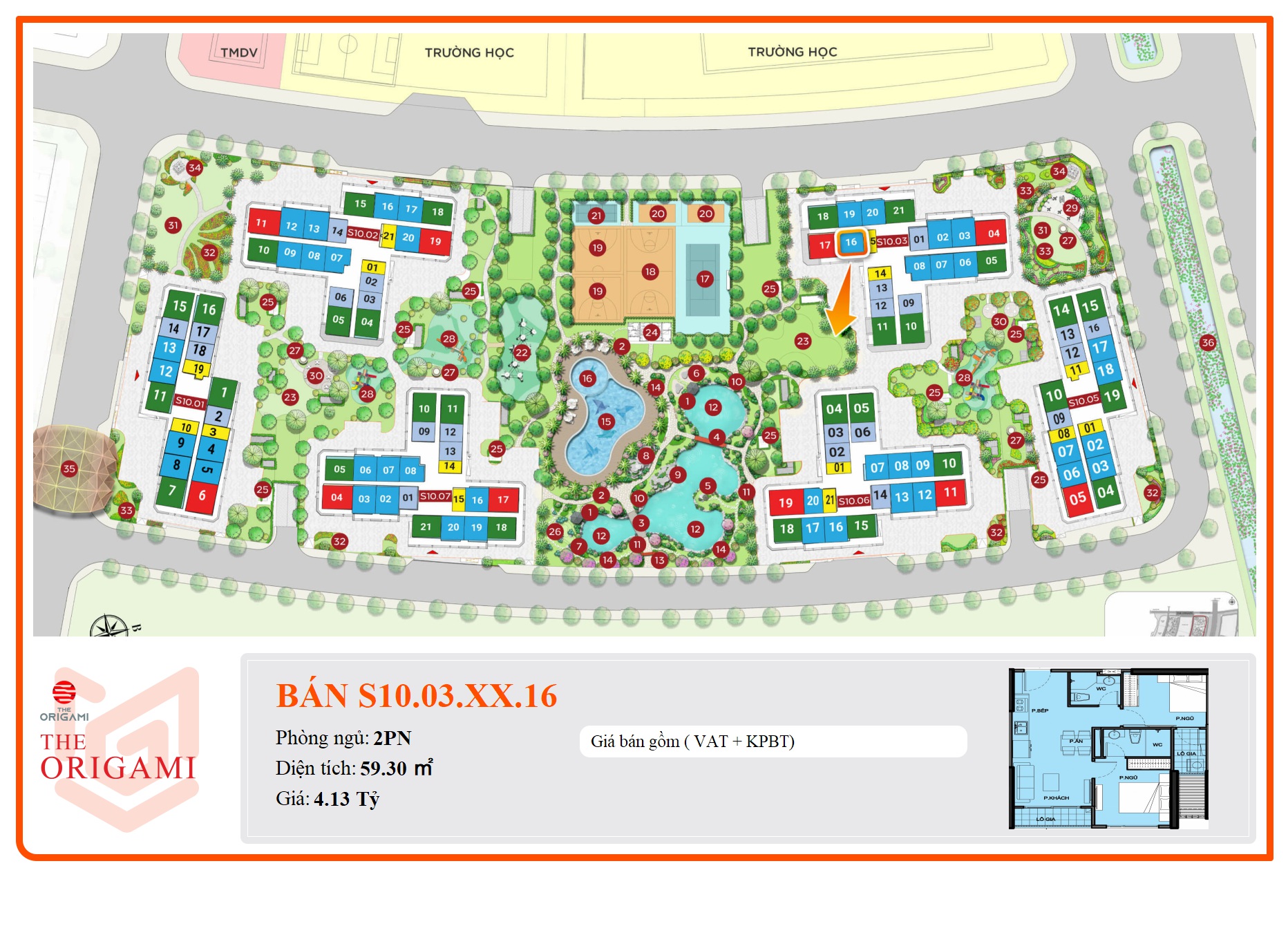 - Phân khu The Origami có vị trí đắc địa, thuận lợi di chuyển, liên kết vùng cho cư dân.