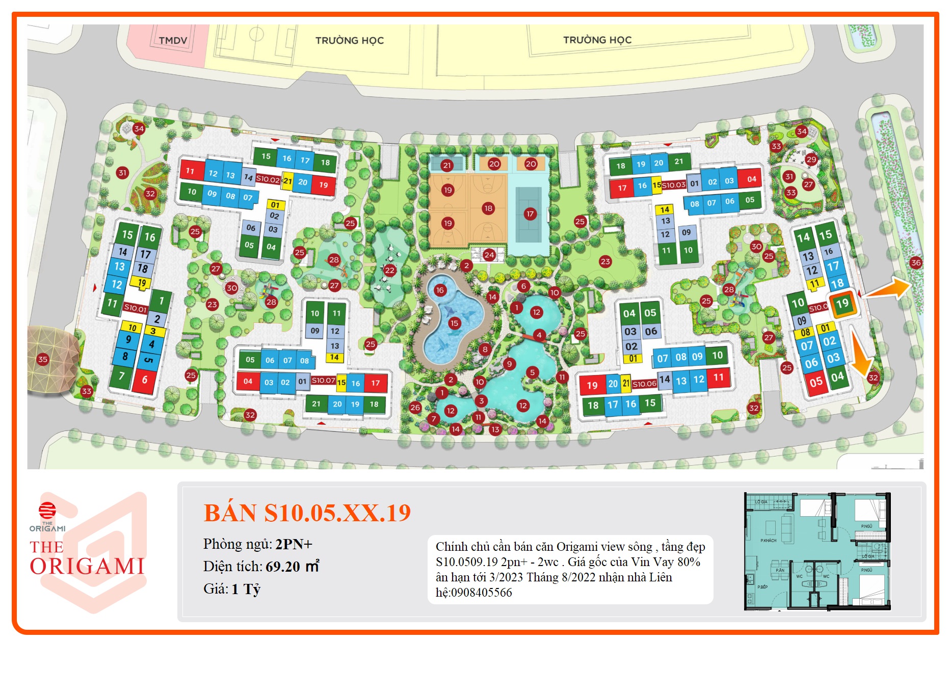 Chính chủ cần bán căn Origami view sông , tầng đẹp S10.0509.19 2pn+ - 2wc . Giá gốc của Vin Vay 80% ân hạn tới 3/2023 Tháng 8/2022 nhận nhà Liên hệ:0908405566