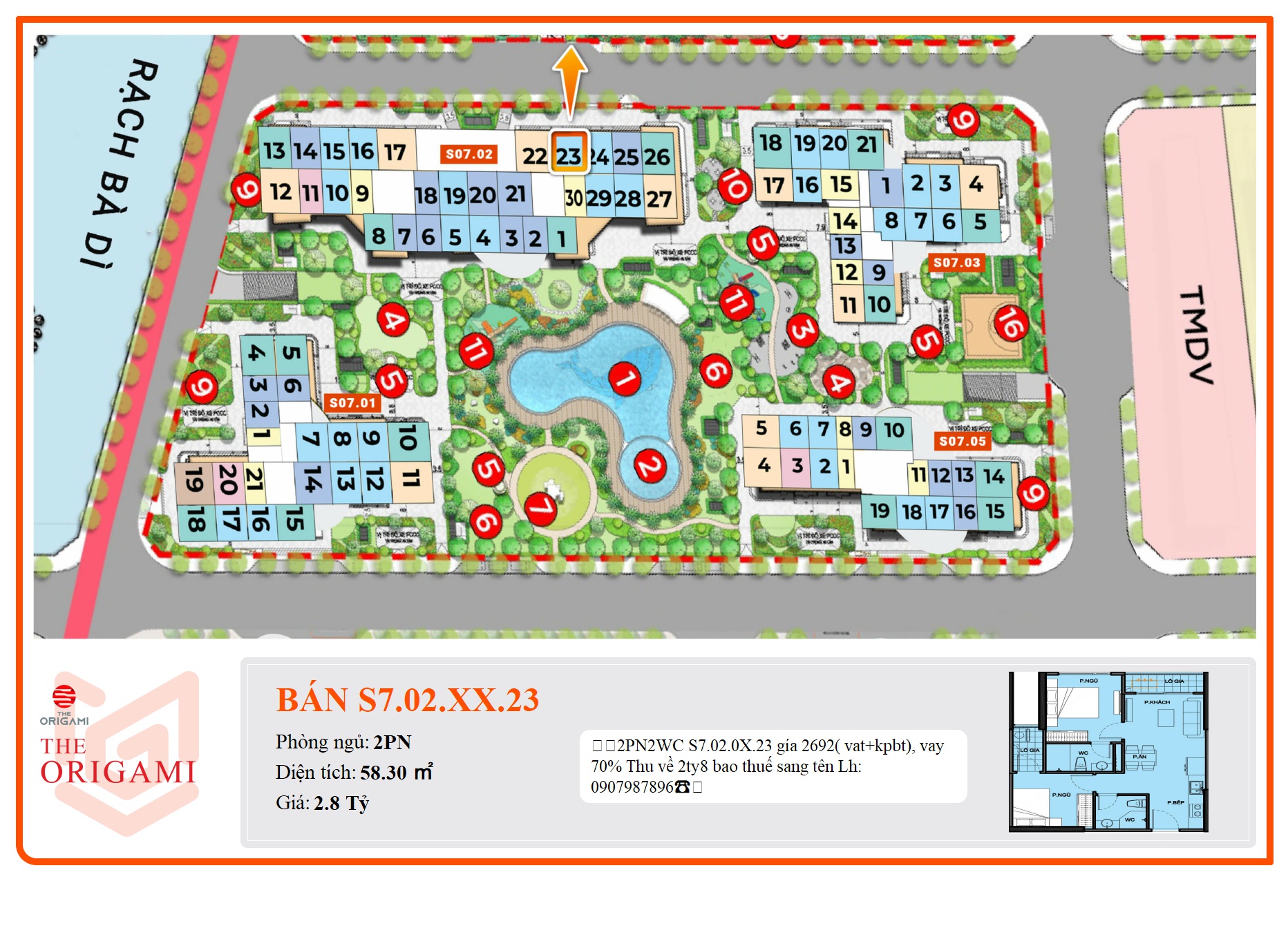 S7.02.0X.23 gía 2692( vat+kpbt), vay 70% Thu về 2ty8 bao thuế sang tên