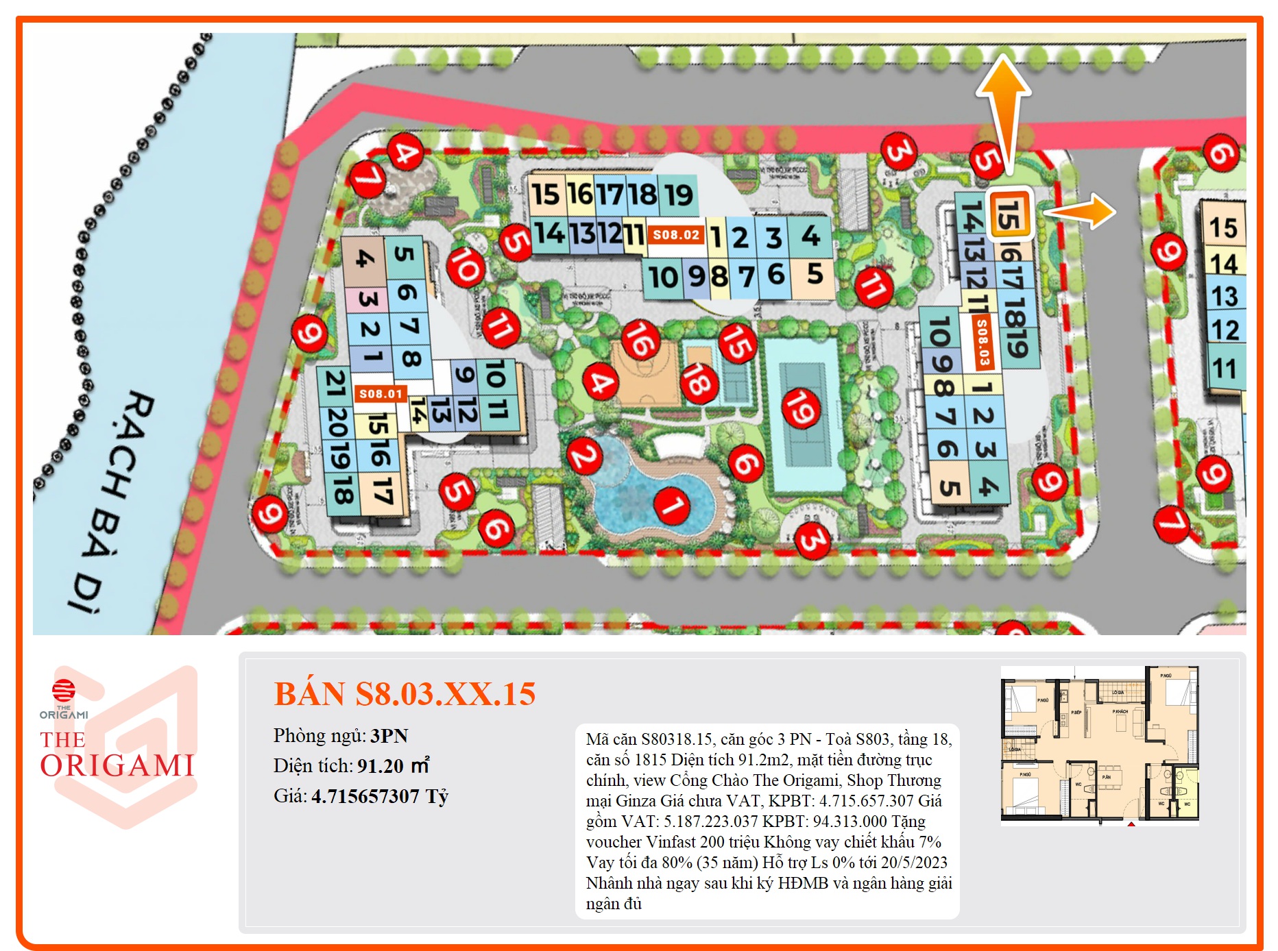- Phân khu The Origami có vị trí đắc địa, thuận lợi di chuyển, liên kết vùng cho cư dân.
