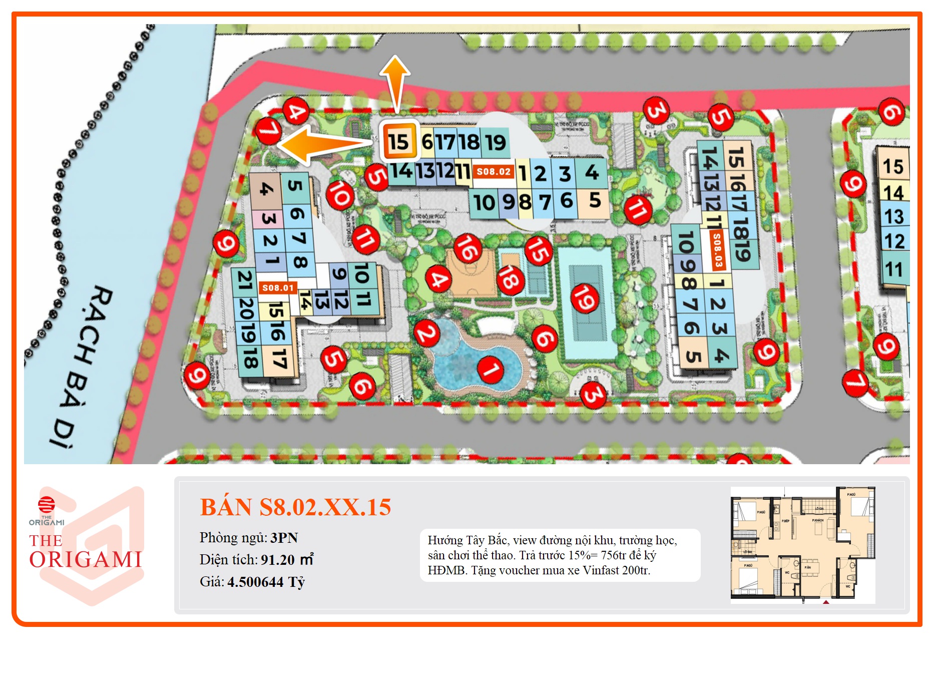 - Phân khu The Origami có vị trí đắc địa, thuận lợi di chuyển, liên kết vùng cho cư dân.