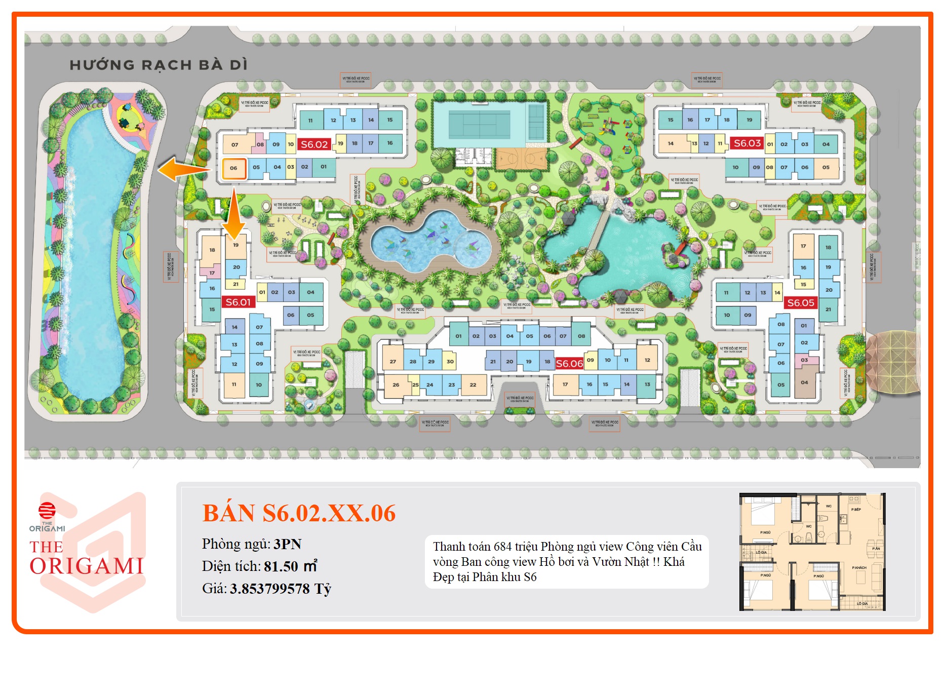 Thanh toán 684 triệu Phòng ngủ view Công viên Cầu vòng Ban công view Hồ bơi và Vườn Nhật !! Khá Đẹp tại Phân khu S6