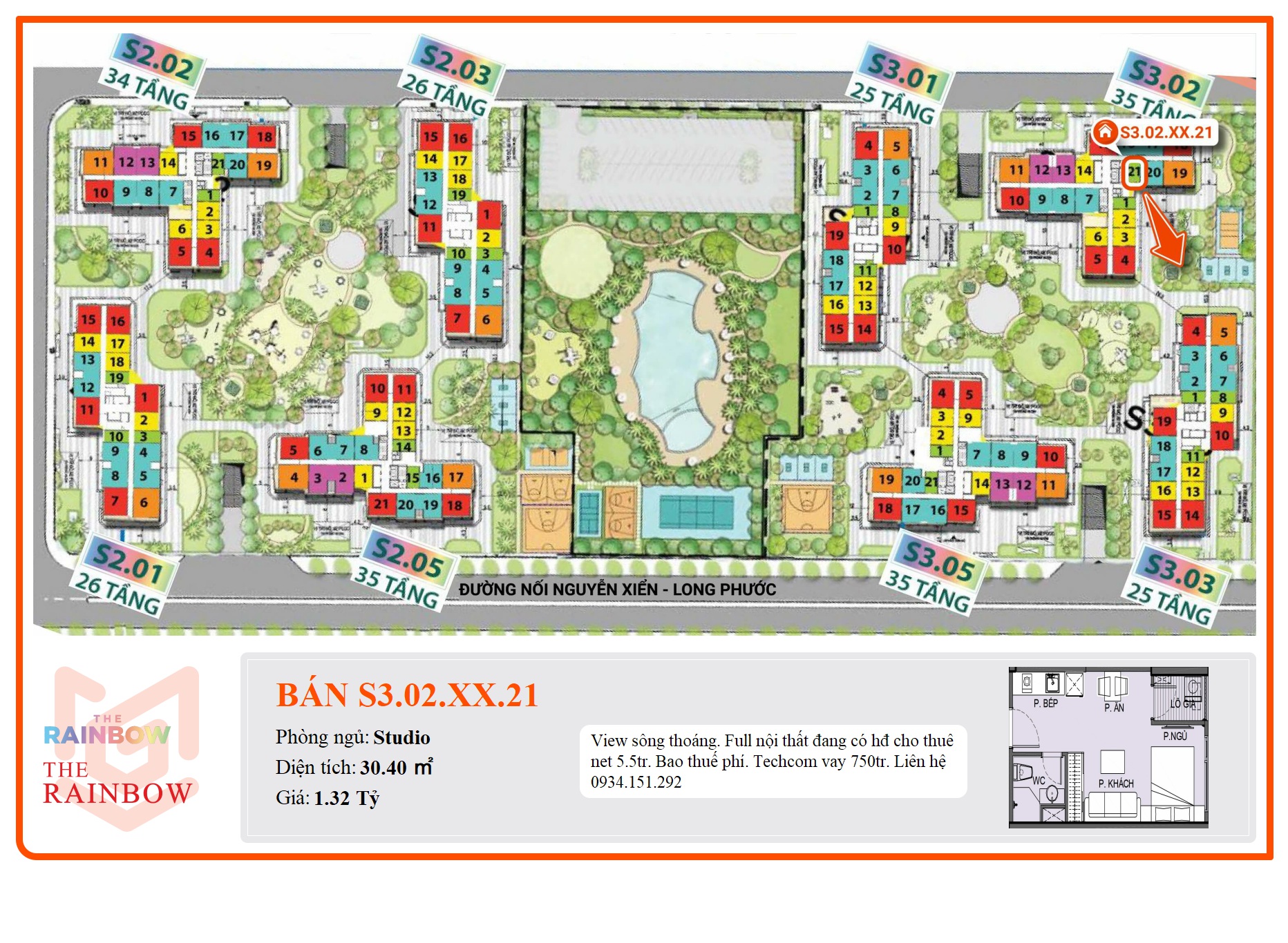 - Phân khu: The Rainbow thuộc KĐT Vinhomes Grand Park