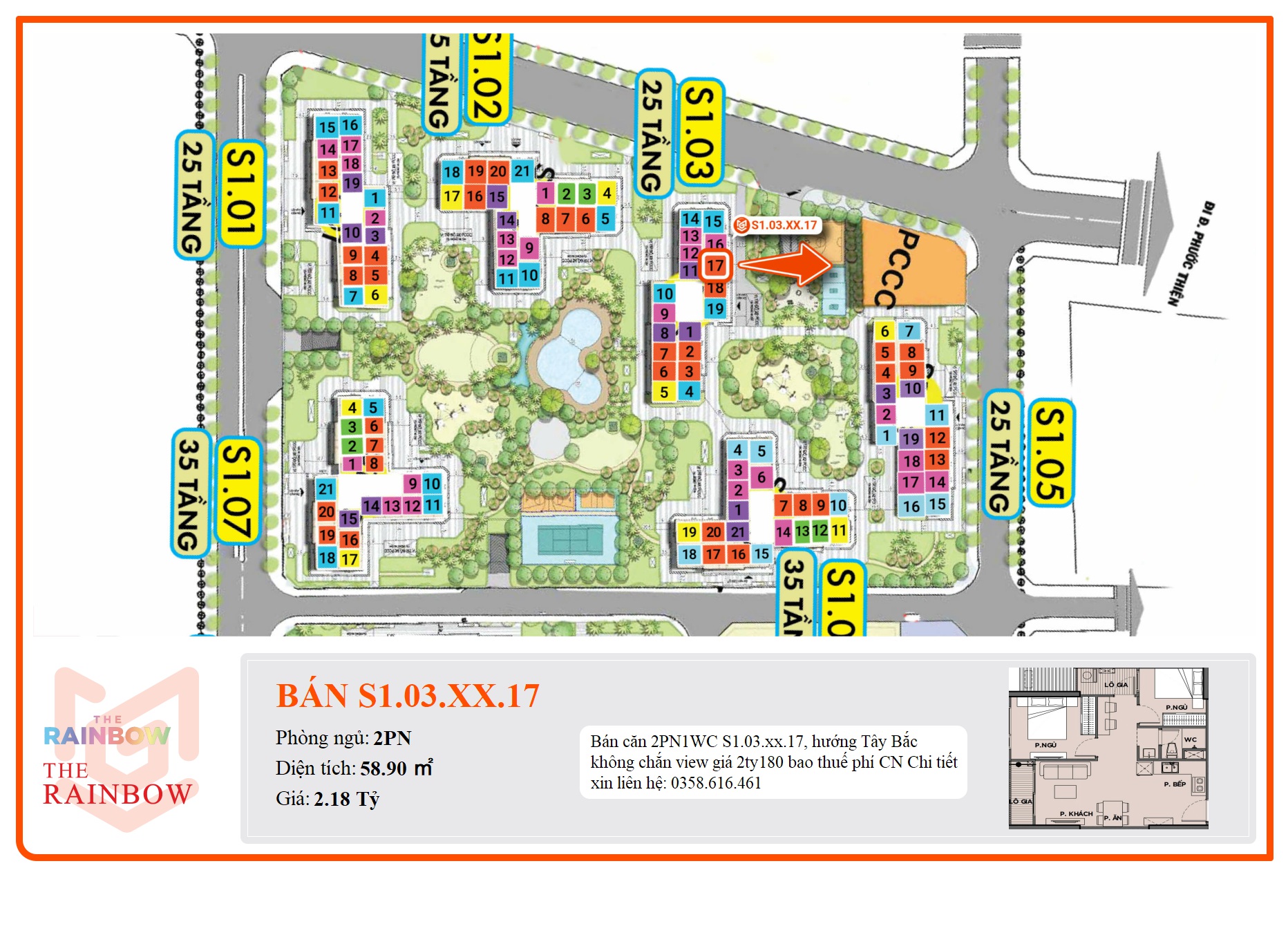 - Toà S1: có 6 tòa tháp cung cấp khoảng 3.327 căn hộ