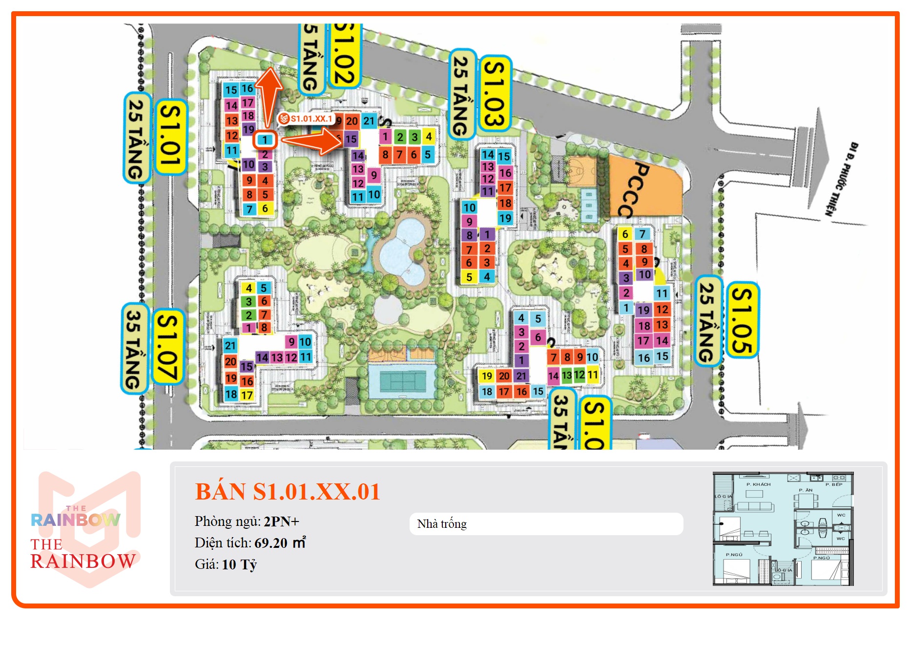 - Toà S1: có 6 tòa tháp cung cấp khoảng 3.327 căn hộ