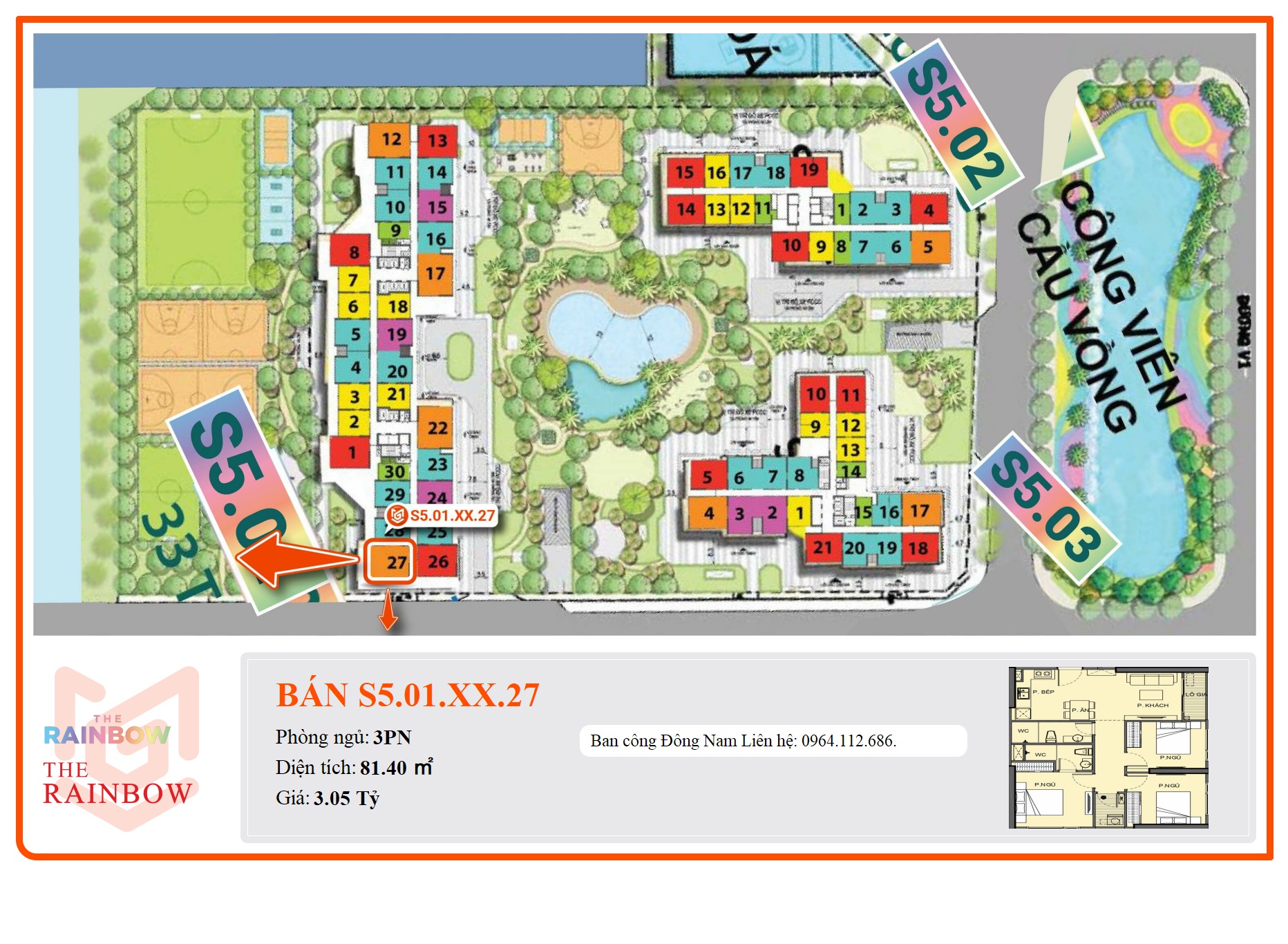 - Phân khu: The Rainbow thuộc KĐT Vinhomes Grand Park