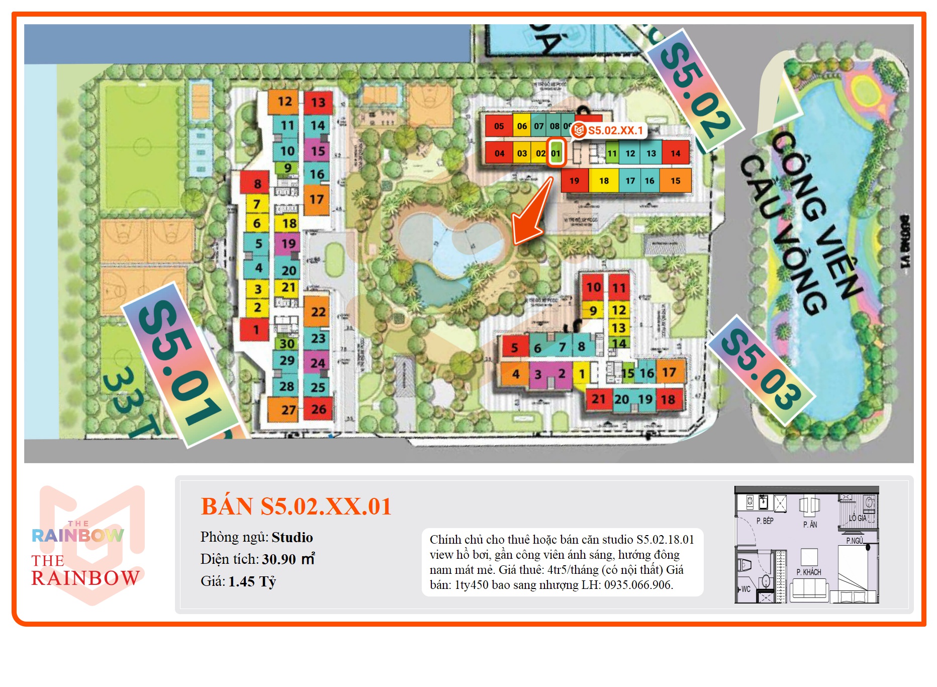 S5.02.18.01 view hồ bơi, gần công viên ánh sáng, hướng đông nam mát mẻ.