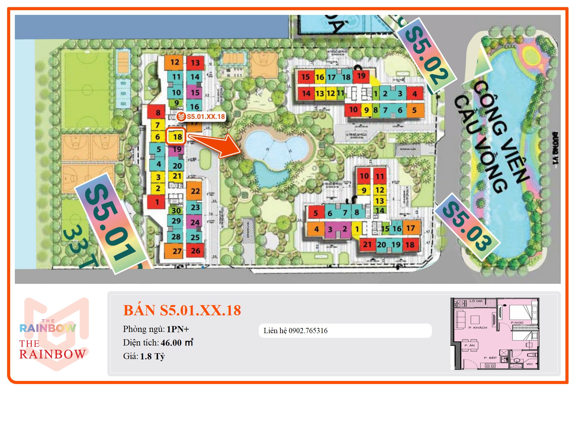 - Phân khu: The Rainbow thuộc KĐT Vinhomes Grand Park
