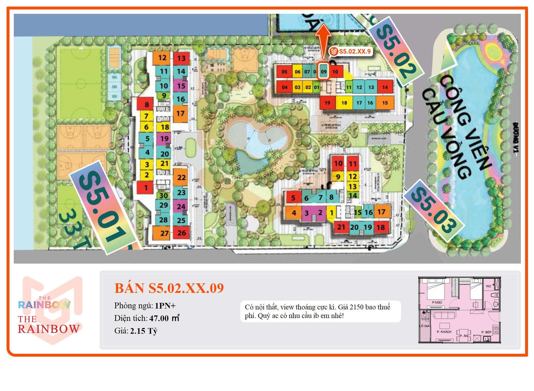 - Phân khu: The Rainbow thuộc KĐT Vinhomes Grand Park