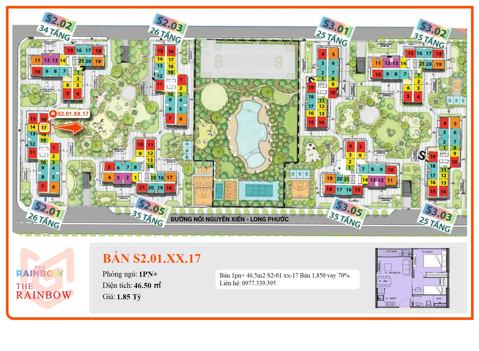 - Phân khu: The Rainbow thuộc KĐT Vinhomes Grand Park