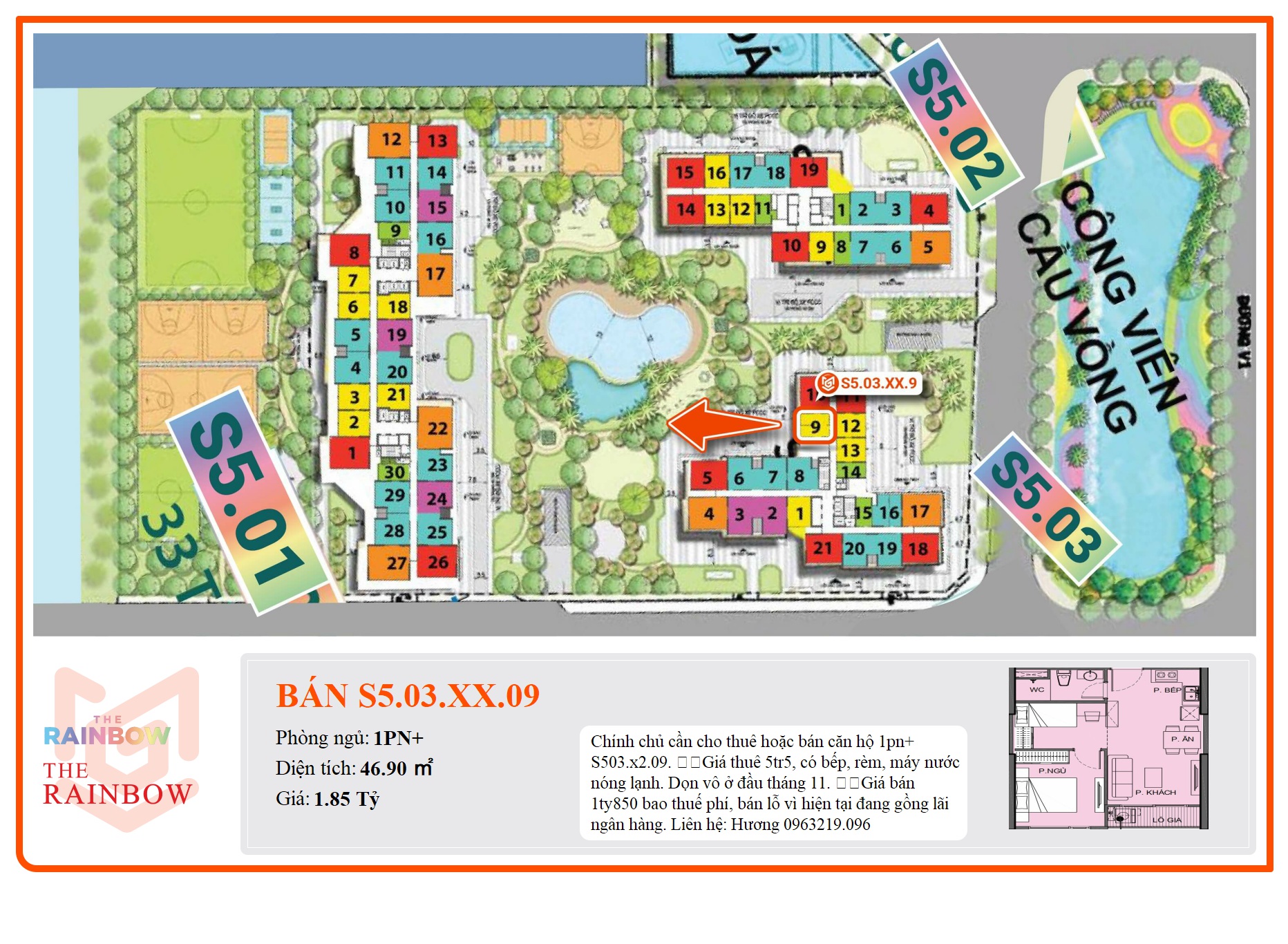- Phân khu: The Rainbow thuộc KĐT Vinhomes Grand Park