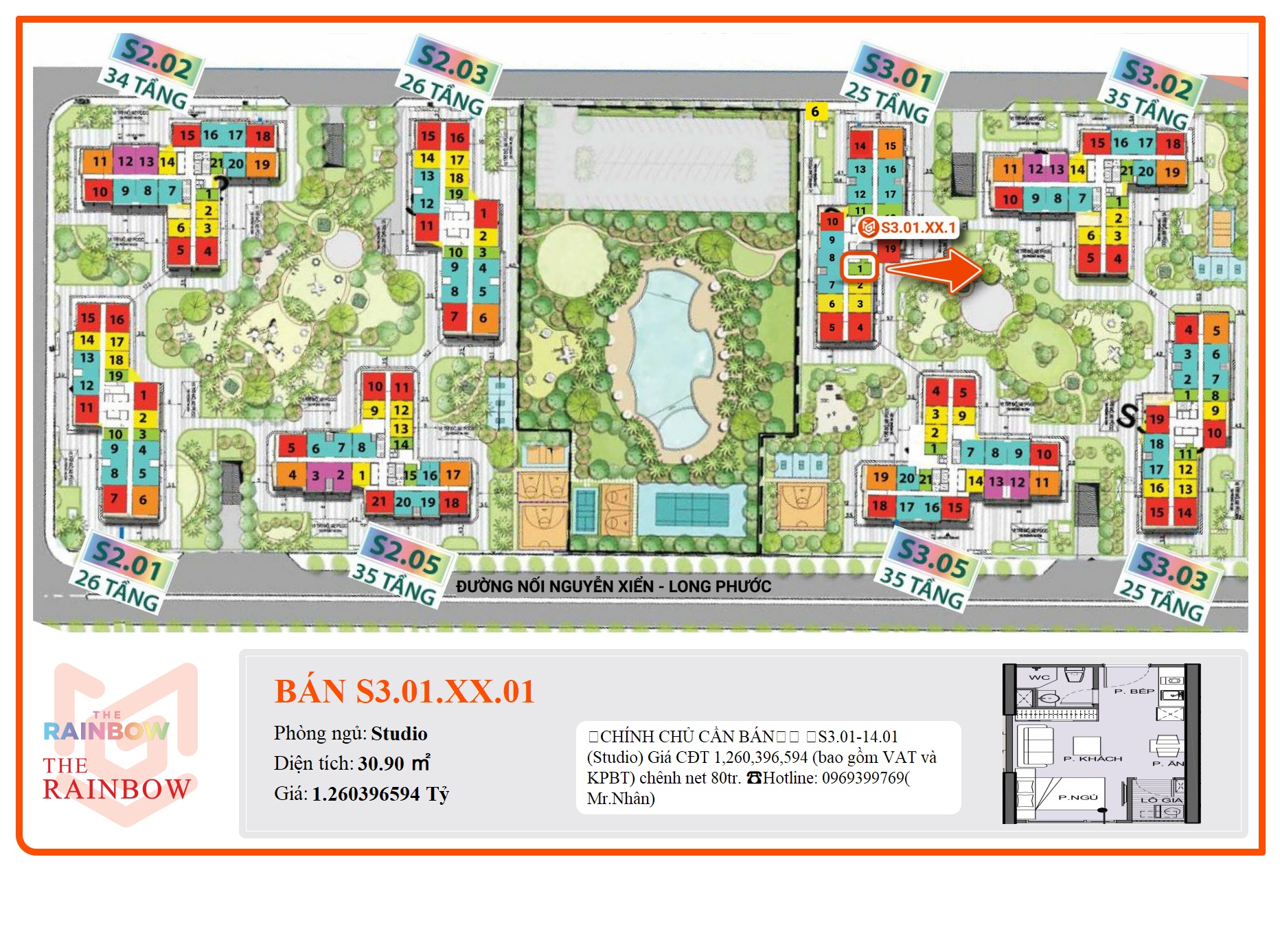 ☘CHÍNH CHỦ CẦN BÁN☘️ 👉S3.01-14.01 (Studio) Giá CĐT 1,260,396,594 (bao gồm VAT và KPBT) chênh net 80tr. ☎Hotline: 0969399769( Mr.Nhân)