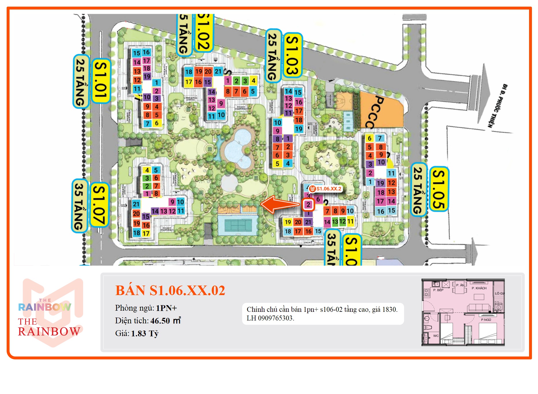 Chính chủ cần bán 1pn+ s106-02 tầng cao, giá 1830. LH 0909765303.