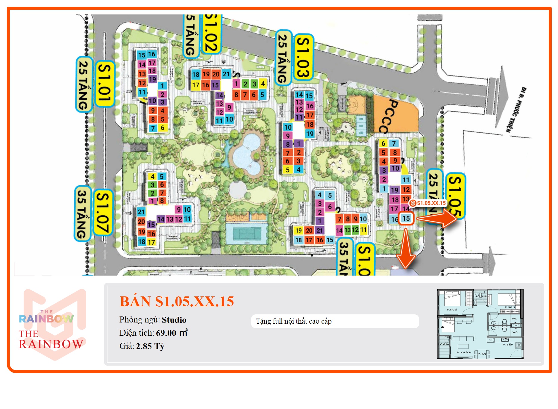 - Toà S1: có 6 tòa tháp cung cấp khoảng 3.327 căn hộ