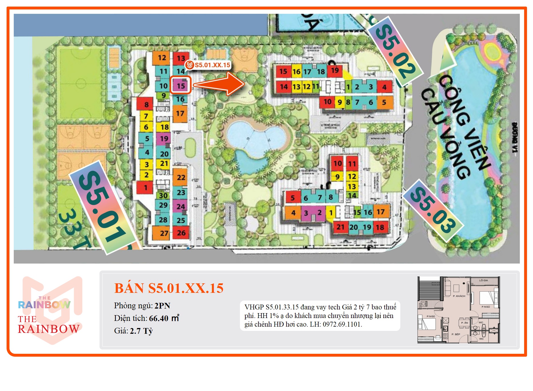 - Phân khu: The Rainbow thuộc KĐT Vinhomes Grand Park