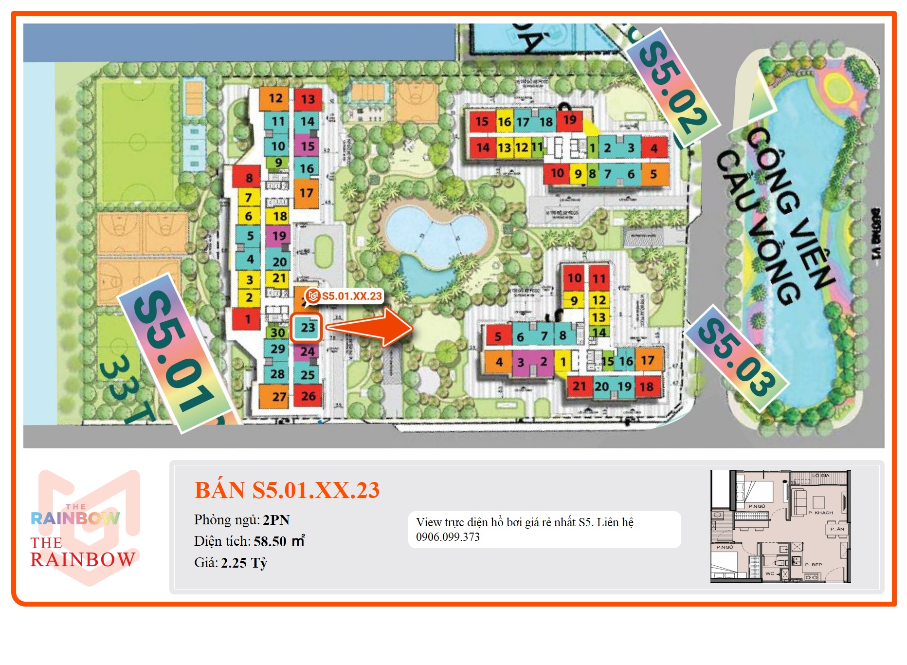 View trực diện hồ bơi giá rẻ nhất S5. Liên hệ 0906.099.373