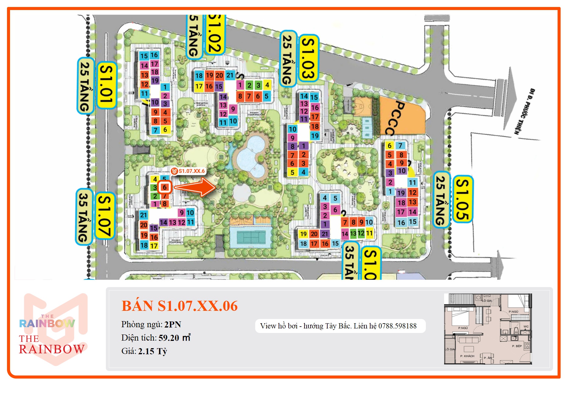View hồ bơi - hướng Tây Bắc. Liên hệ 0788.598188