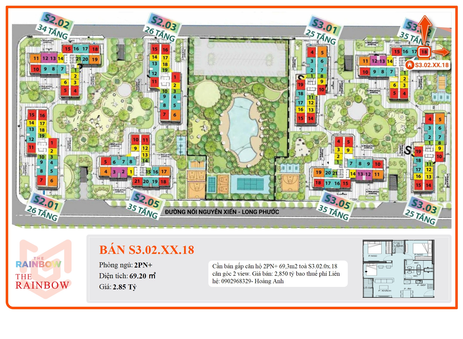 Cần bán gấp căn hộ 2PN+ 69,3m2 toà S3.02.0x.18 căn góc 2 view.